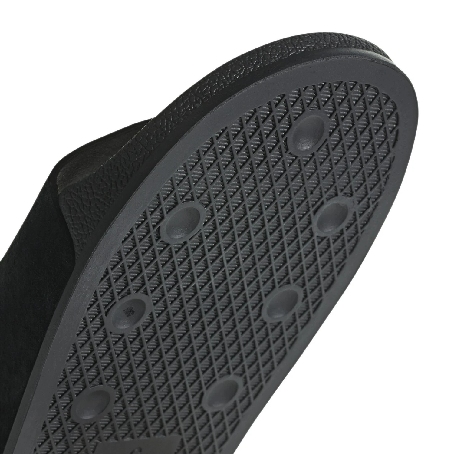 De Adilette-sandaal, die in 1972 werd gecreëerd, werd door atleten gedragen na hun wedstrijden. Toen werd het een casual must-have. Deze versie maakt deel uit van de adidas Originals Gallery-reeks, met iconische adidas stukken waarop een kunstenaar zijn creativiteit kan loslaten. Het is ontworpen in samenwerking met Hattie Stewart. Deze sandaal heeft Hattie’s kenmerkende cartoonachtige gekrabbelde ogen op het zachte suède bovenwerk.