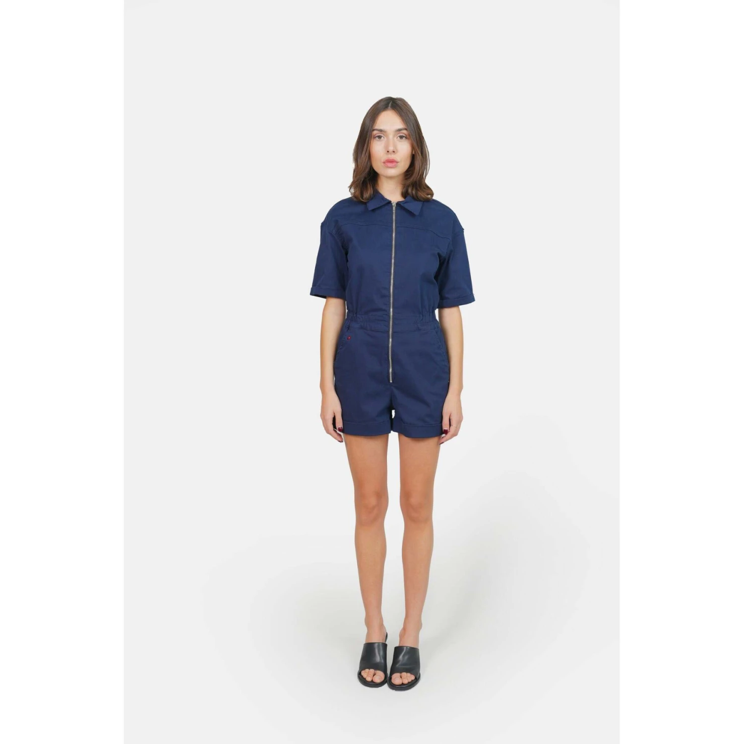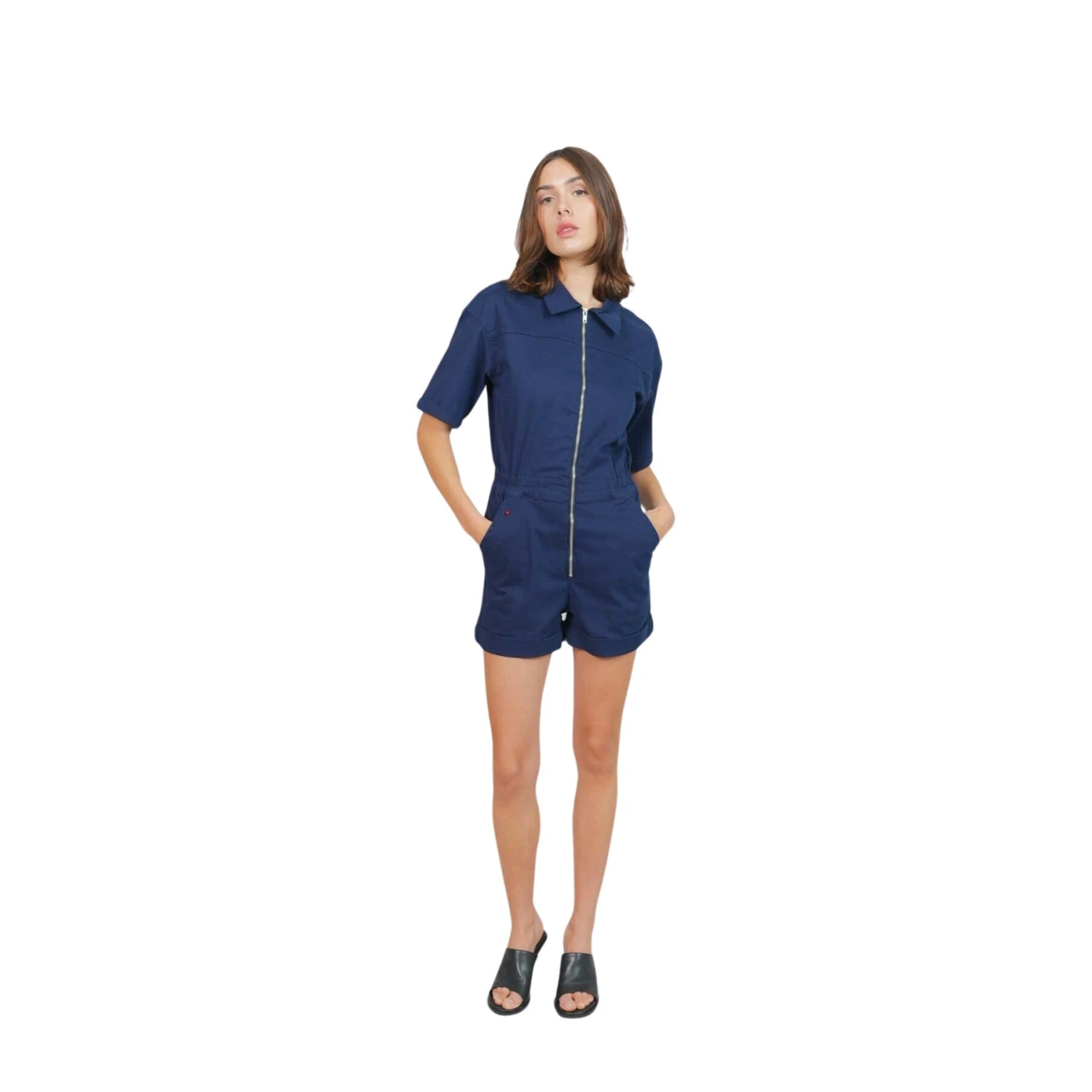 Blauwe katoenen jumpsuit met korte mouwen voor dames F.A.M. Paris Dolce