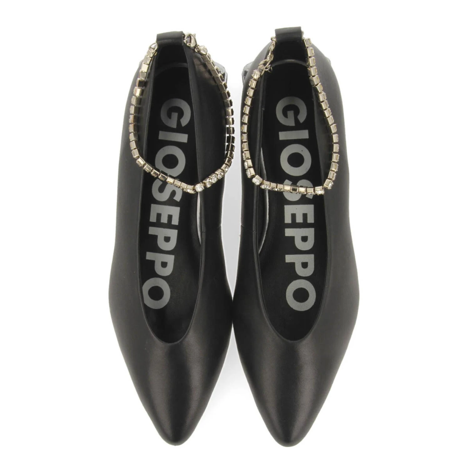 De origineelste ballerina’s van dit seizoen vind je op Gioseppo Woman! Ballerina’s met slanke zwarte leren neus en glitter enkelbandje verstelbaar met minisluiting. Binnenzool in met latex gevuld leer. Leren voering en zeer soepele zool.