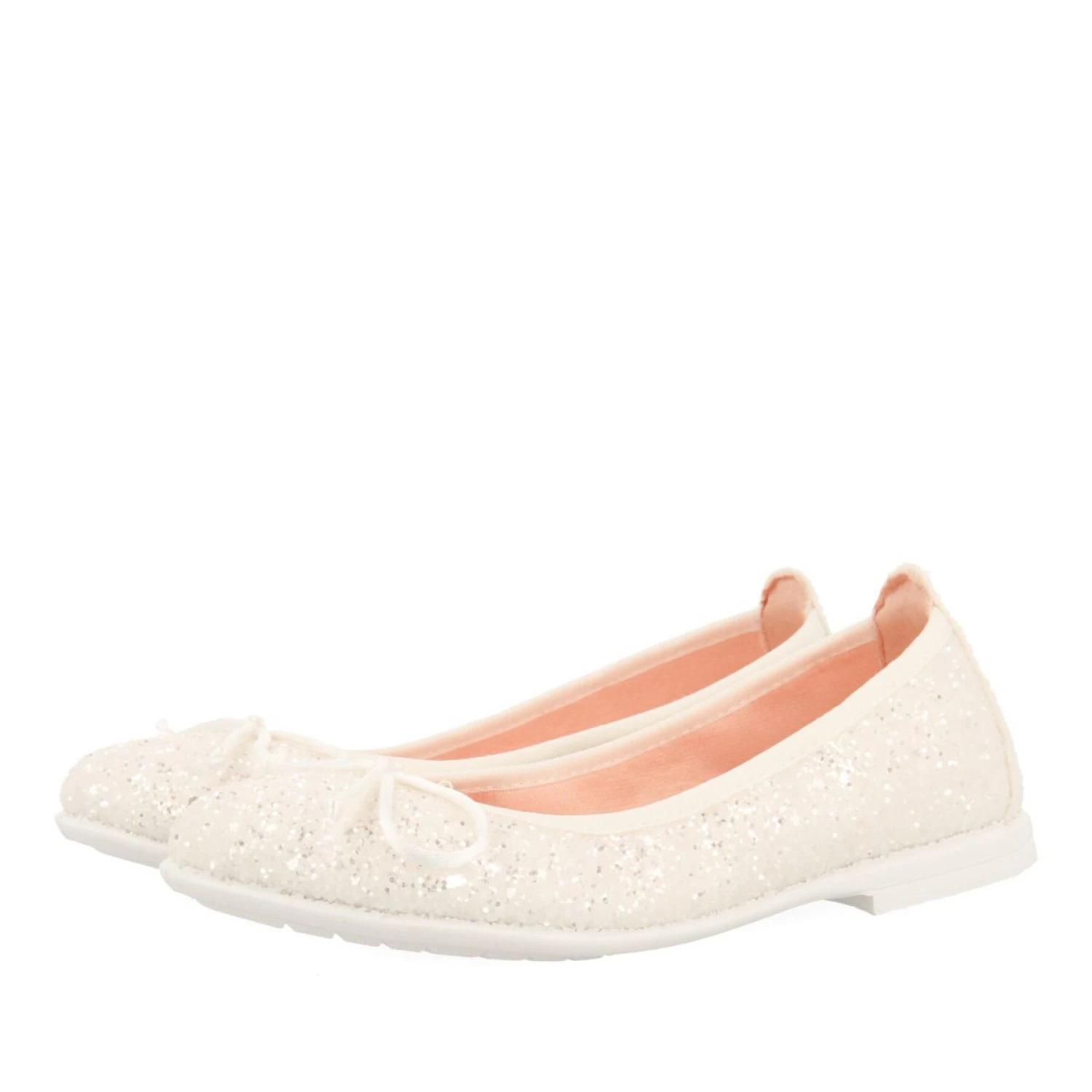 Maak je klaar voor het evenementenseizoen! Witte ballerina’s met pailletten. Ze hebben een sterk gewatteerde zool en een flexibele zool. Comfort en stijl gaan hand in hand!
