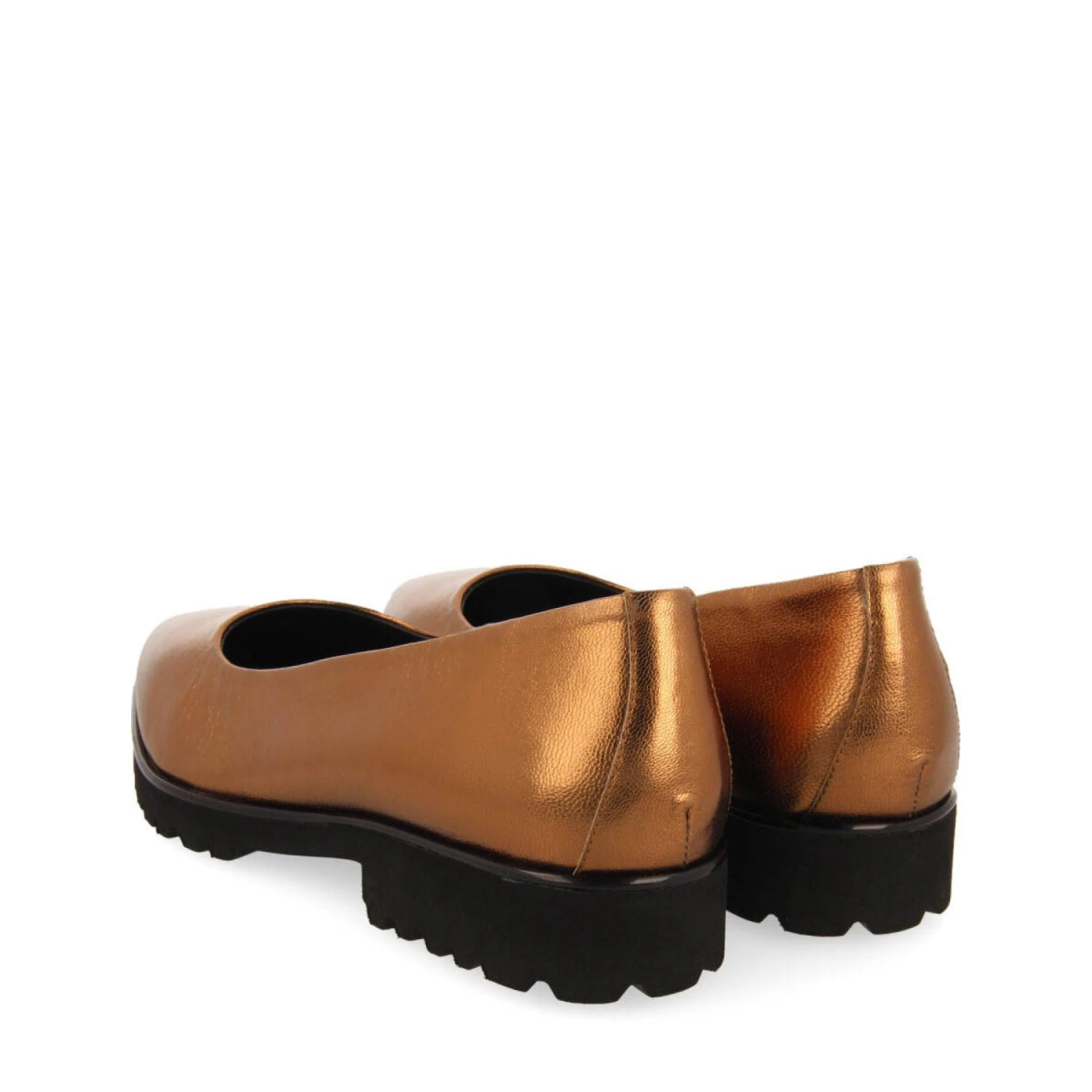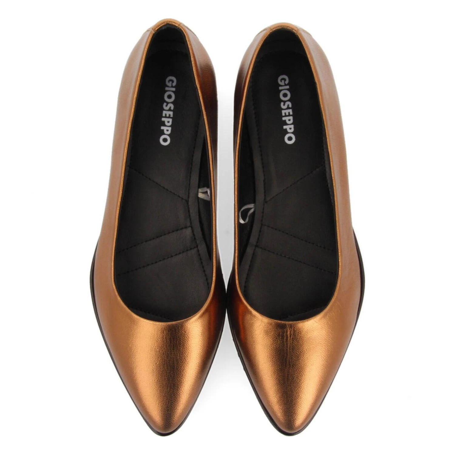 Dit model breekt met de ballerinatraditie! Ballerina’s van bronsleer met dikke zolen. Bovenwerk, binnenzool en voering van leer dat is geproduceerd met behulp van een duurzamer looiproces dat voldoet aan de normen van de Leather Working Group. Sterk gepolsterde latex binnenzolen voor extra comfort. Flexibele zolen. Ontdek de nieuwste ballerina’s uit de nieuwe Gioseppo Woman collectie.