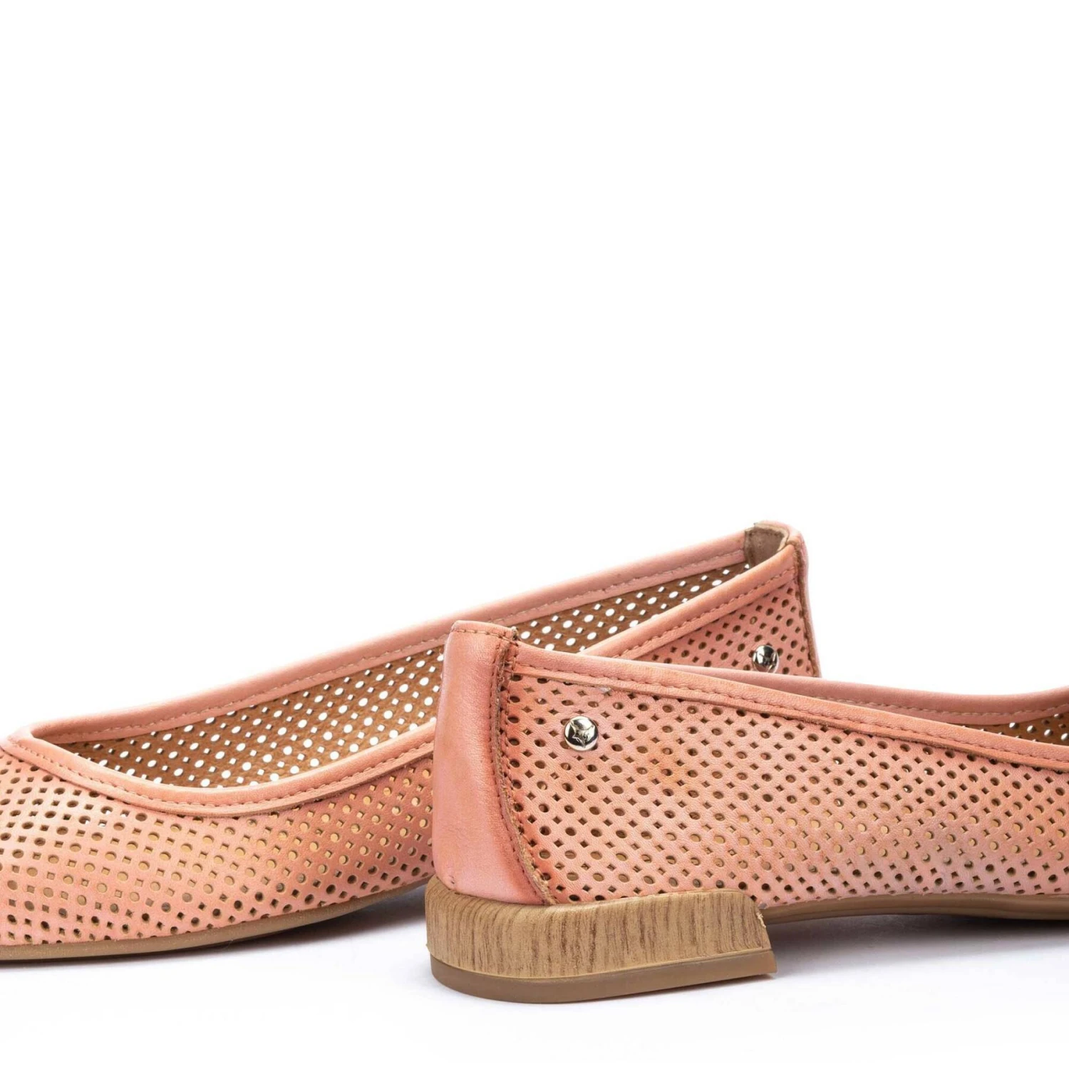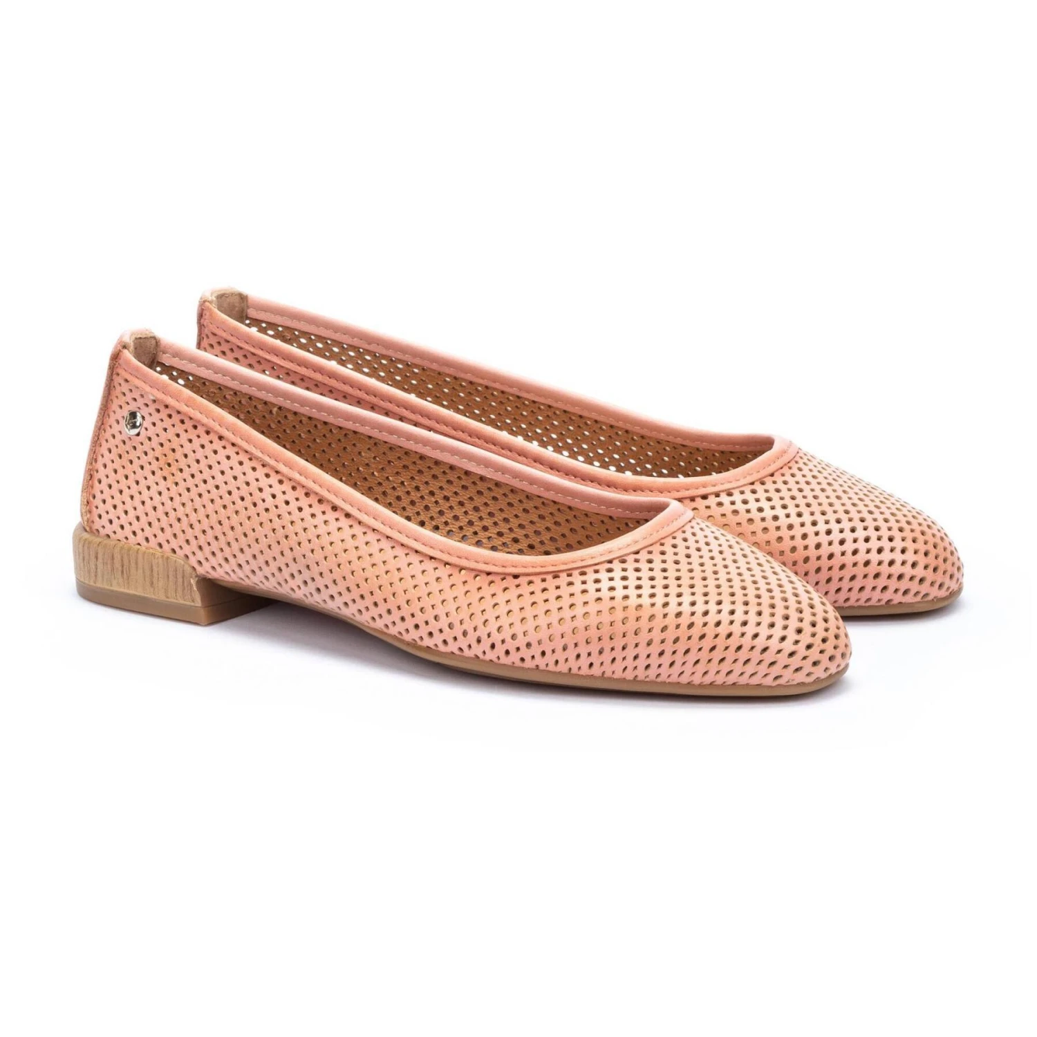 Een lijn van zeer vrouwelijke geklede schoenen die spelen met leer met textuur.