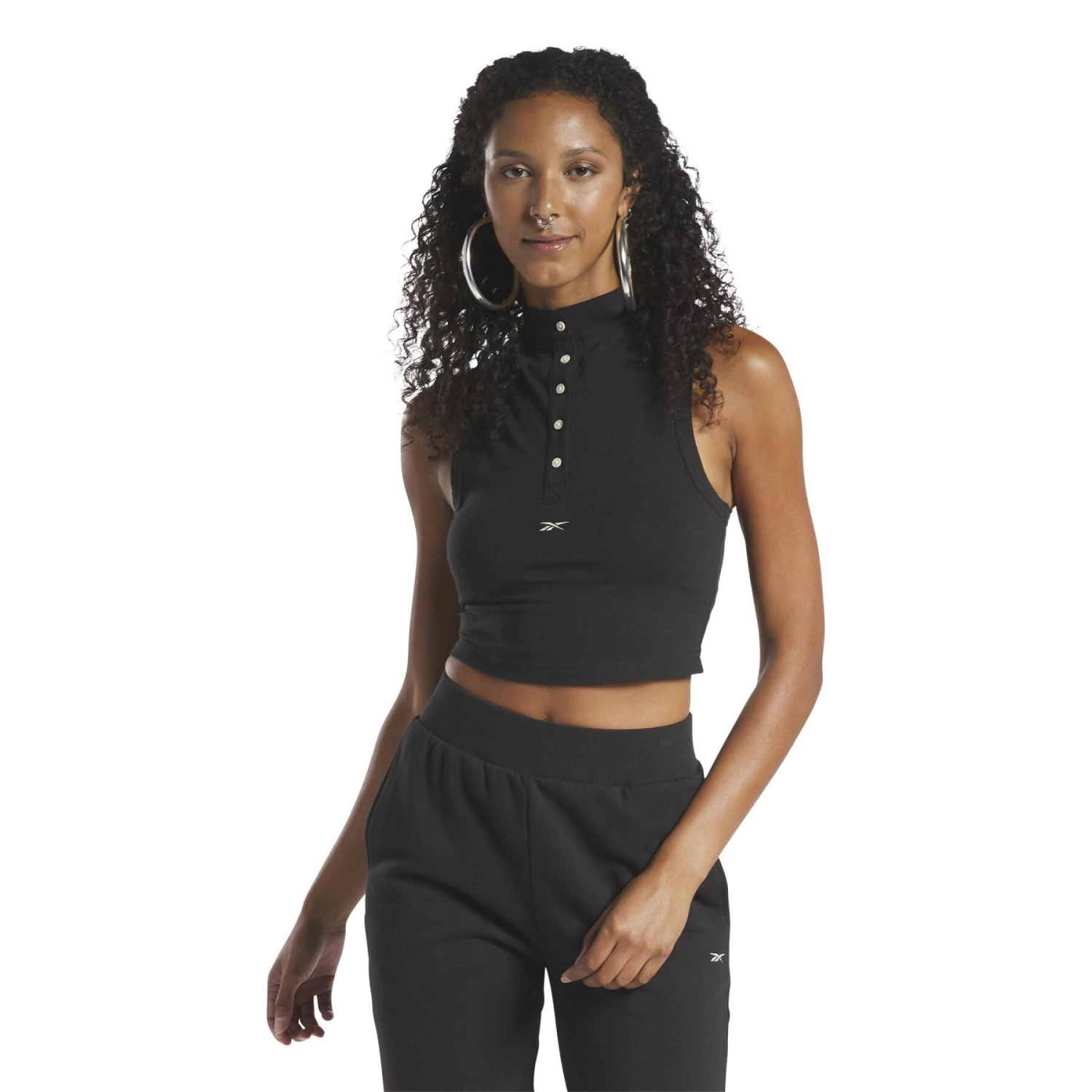 Een verbeterde versie van de iconische tanktop. Deze dames crop top heeft alles wat je nodig hebt. Zachte, rekbare stof. Een kleine vector Reebok. Mooie knoppen. En neutrale kleuren, zodat je het overal bij kunt passen. Een totale overwinning.