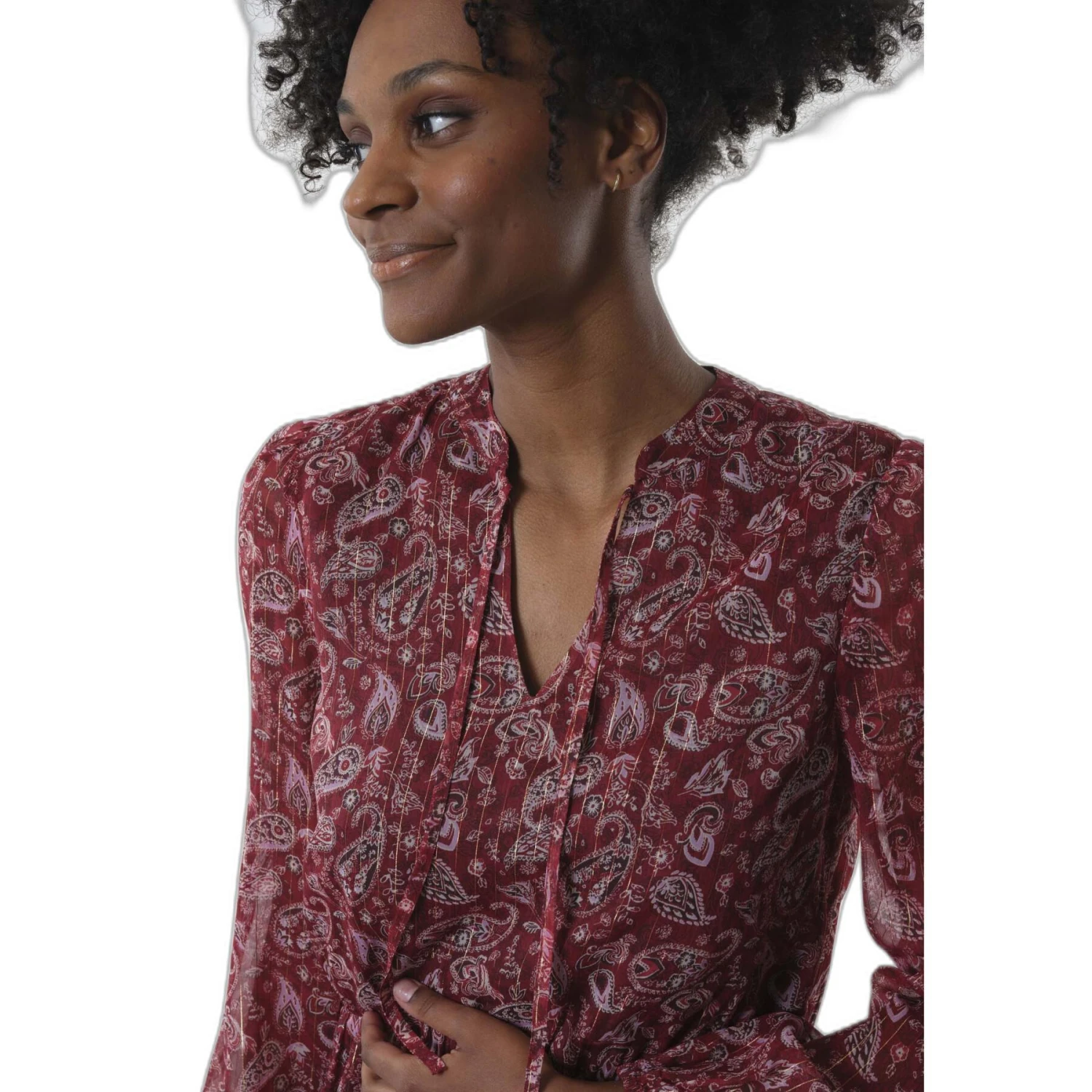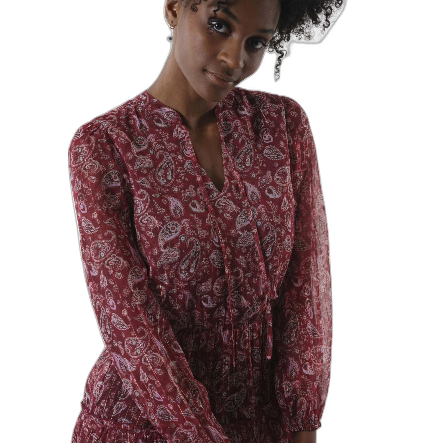Met zijn kasjmierpatroon en zijn lurexdraadjes speelt dit jurkje de originaliteitskaart. De kleine ruches zijn perfect om uw bohemian look af te maken,