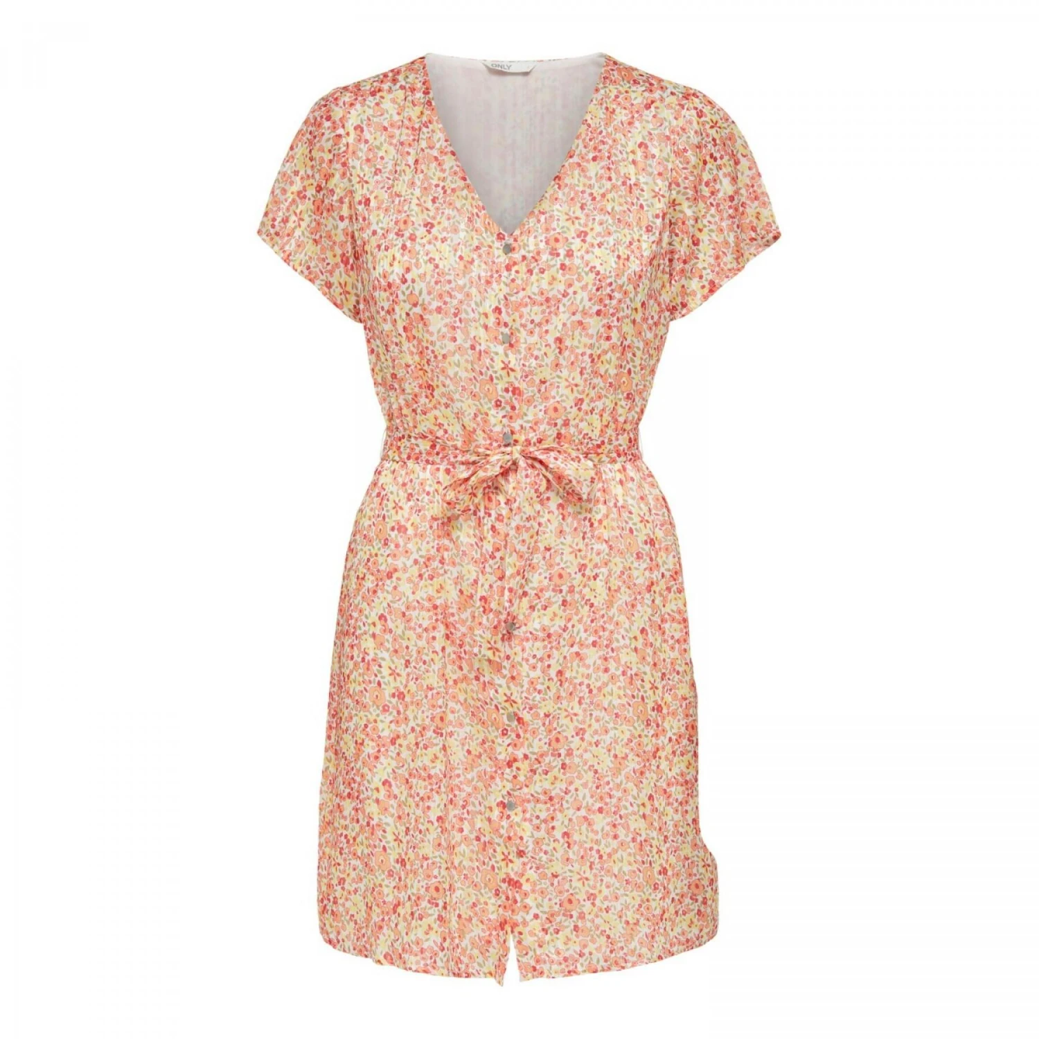 - lds stoffen top met korte mouwen en v-hals met knoopsluiting