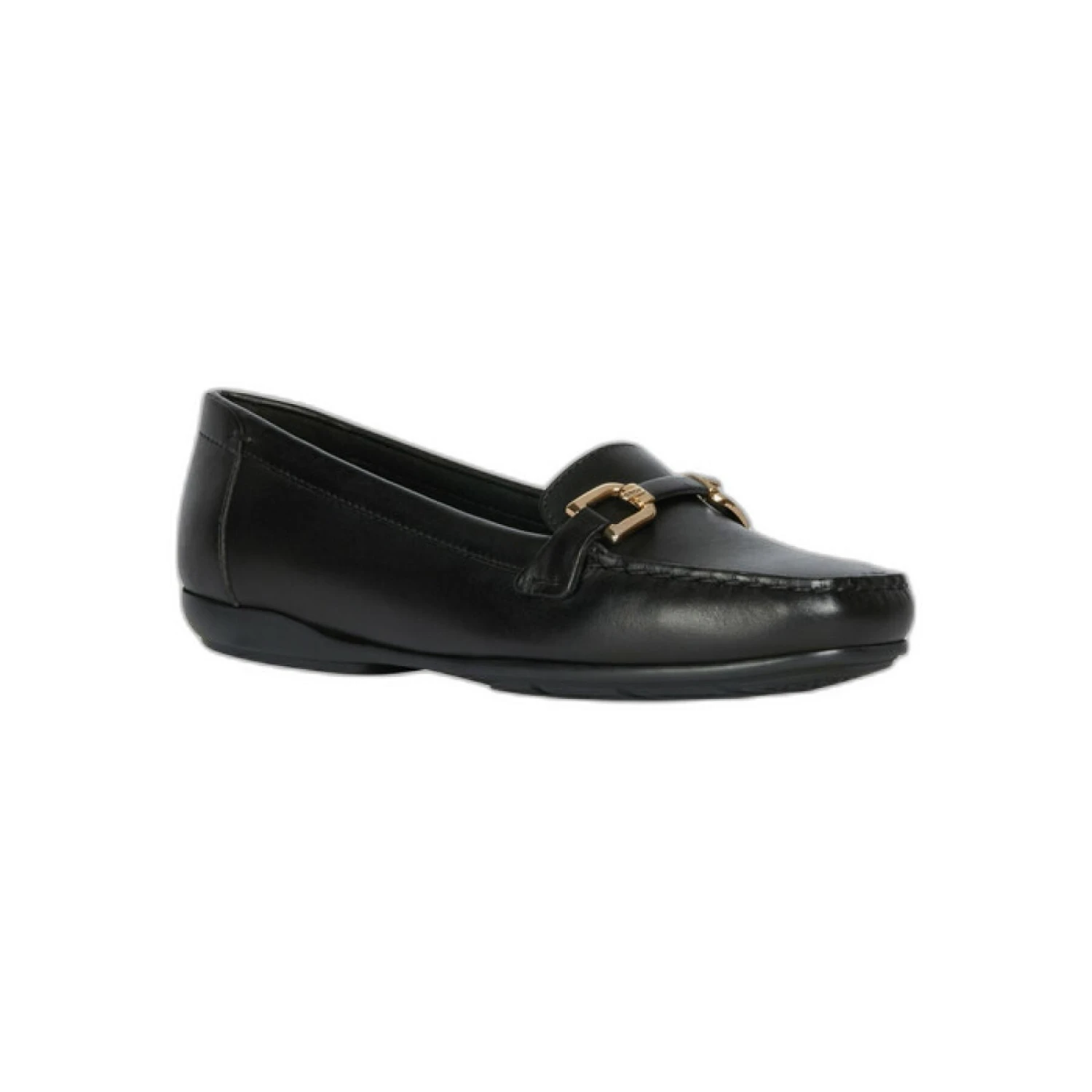 Tijdloze loafers voor dames voor een casual en informele stijl.Comfortabel en ademend, de basic Annytah Moc loafers van glad zwart leer zijn perfect voor elke gelegenheid. Het essentiële ontwerp van het bovenwerk is verrijkt met een metallic detail.