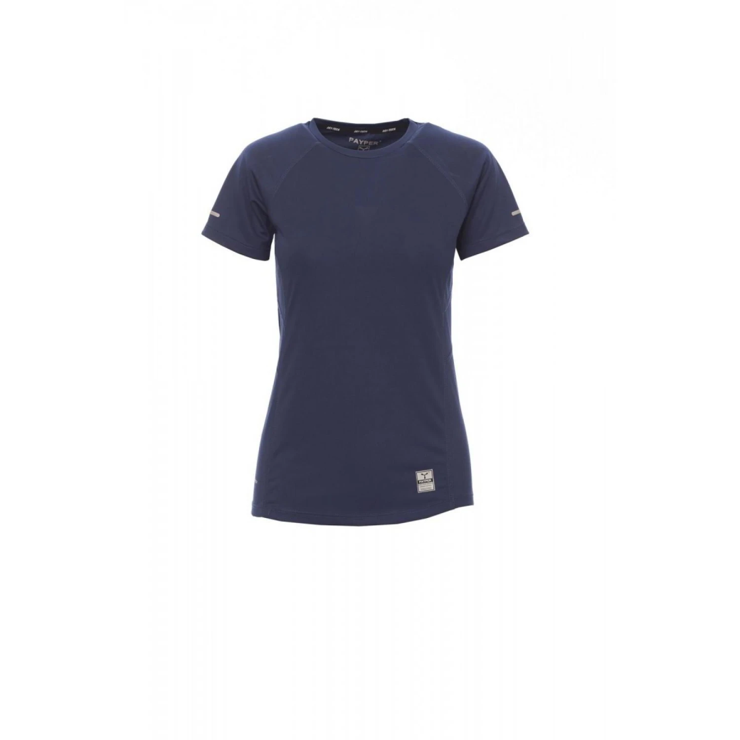 Technisch-sportief dames-T-shirt met raglanmouwen, dubbele zijnaden voor een betere draagbaarheid, gestroomlijnde onderkant en langere achterkant, reflecterende inzet op de mouwen en de rughals, contrasterende kraagband, transferetiket.