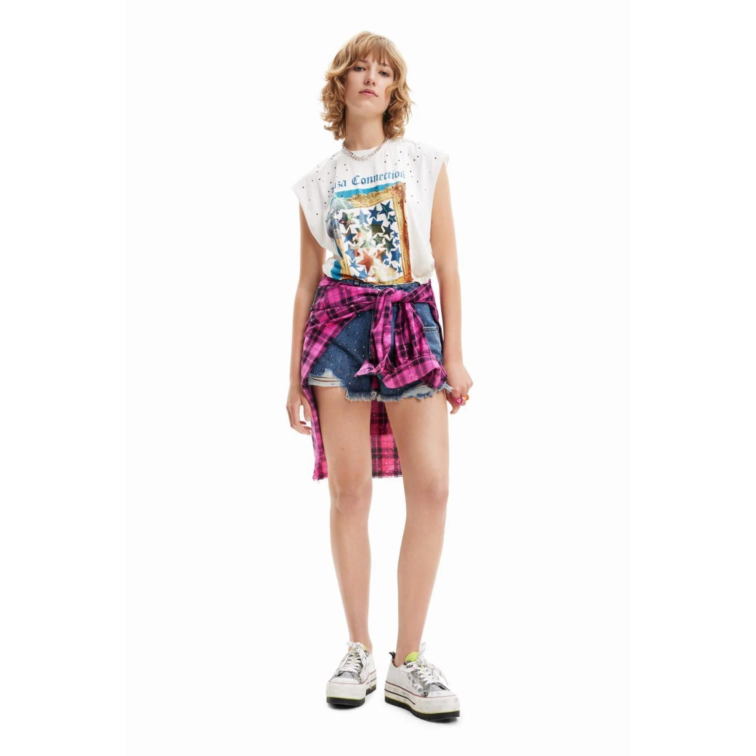Mouwloos T-shirt met een print op de voorkant en studs.