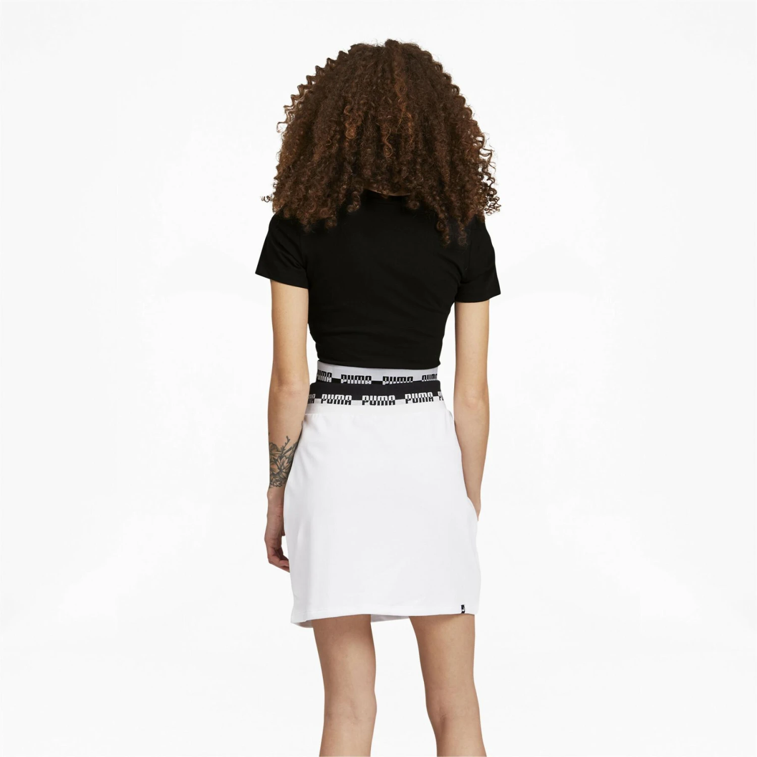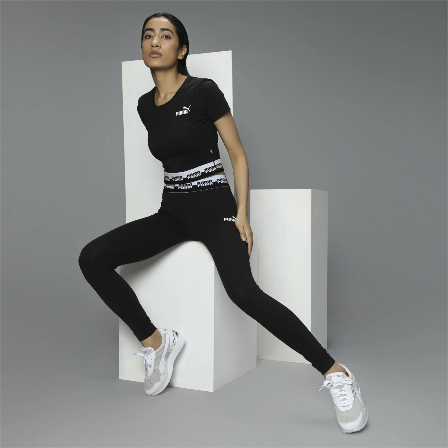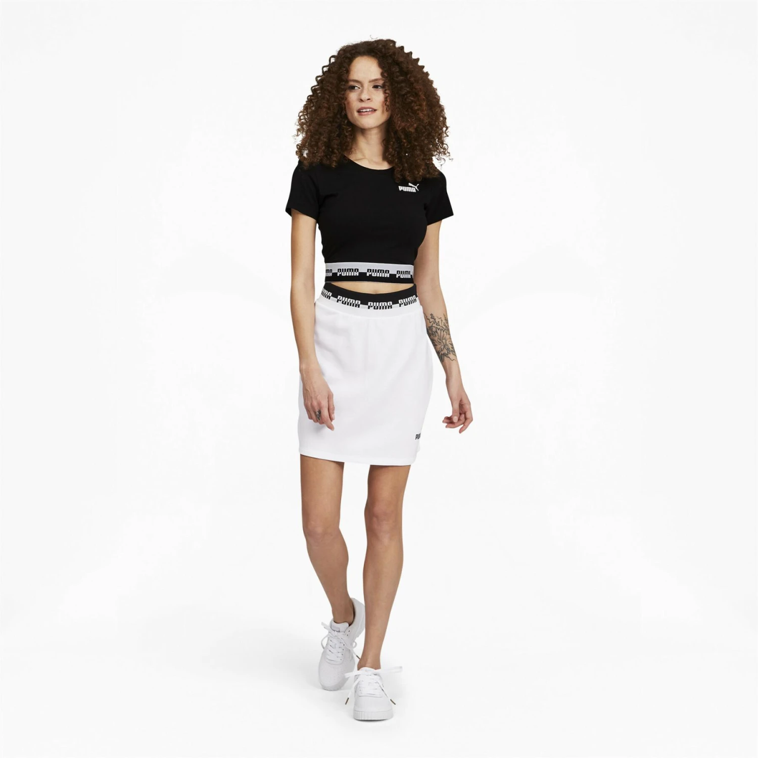 De streetwear-stijl van de Amplified-collectie is zowel modern als sportief: dit korte, getailleerde T-shirt heeft een brede elastische tailleband met een opvallende designopdruk.