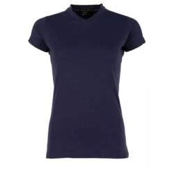 Dit sportieve shirt voor dames is gemaakt van een mix van katoen (60%) en polyester (40%). Deze mix van materialen maakt het shirt geschikt om zowel sportief als casual te dragen. Het shirt heeft een grafische print Stanno op de schouders. De V-hals is gemaakt van een elastische geribde stof.