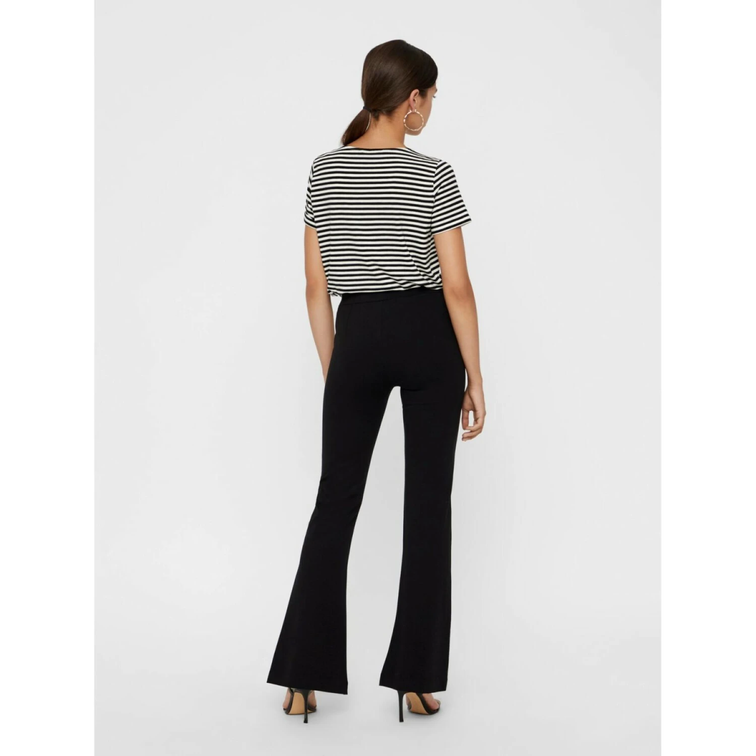 – Slim fit flare broek – Regular fit – Stretchy viscose blend materiaal – 32cm binnenbeenlengte: 81cm in maat S – Model is 177cm lang en draagt een maat S. Slim fit flare broek gemaakt van stretchy viscose blend materiaal. De broek is perfect met een gebreide trui en sneakers.