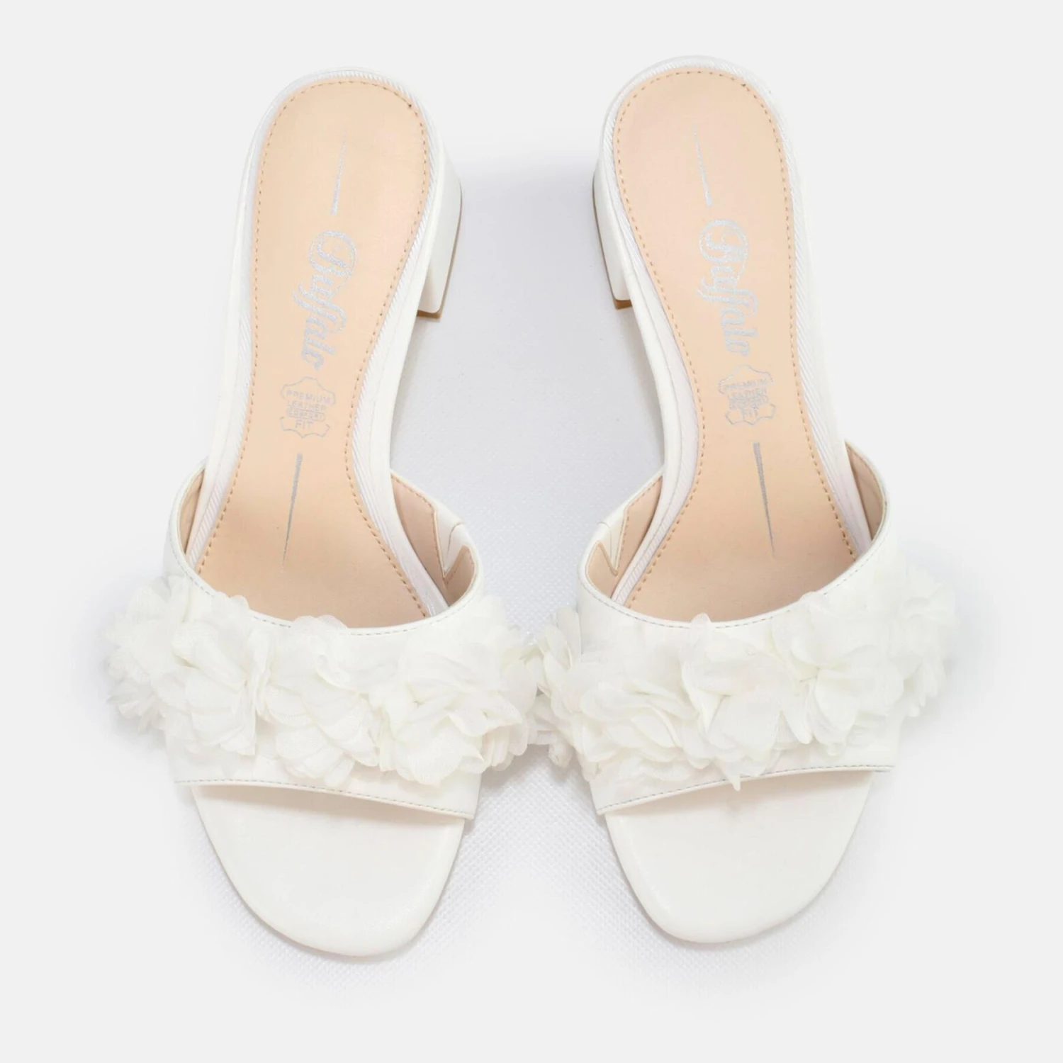 Bloemen zijn de poort naar het hart van een vrouw. En de sandalen Luna Bloom zijn daar het bewijs van. De bloemapplicaties kleden uw voeten op een romantische manier aan en laten ze mooi uitkomen. De blokhak onderstreept de vrouwelijke kant van dit model en zorgt ervoor dat je de hele nacht kunt dansen.Kenmerken:satijn in ivoorkleurbloemapplicatiesopen teen5 cm blokhakleren binnenzool en memory foam