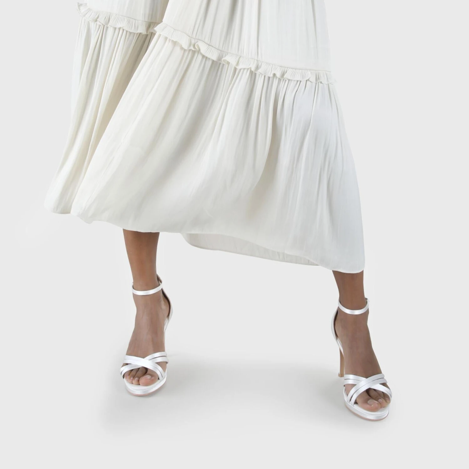 Glamoureuze en tijdloze schoenen voor elke gelegenheid: de elegante sandalen Xenia wachten op u in glinsterend satijn. De twee dubbele bandjes en het enkelbandje benadrukken de vrouwelijke uitstraling van uw voeten. De trendy ivoorkleur, de chique uitstraling en de ultrahoge hak van dit model maken uw benen langer.Kenmerken:ivoorkleurig satijndesignenkelbandje9,5 cm hoge hak