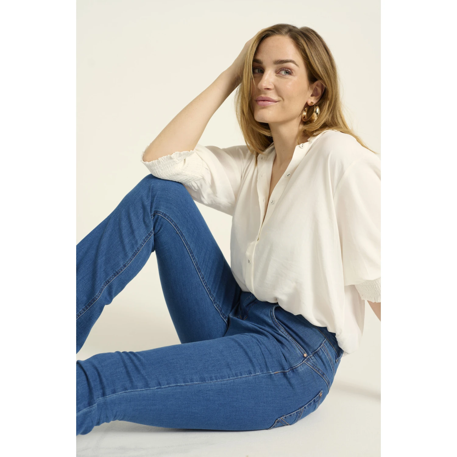 - Samenstelling: 80% Katoen, 18% Polyester, 2% Elastaan