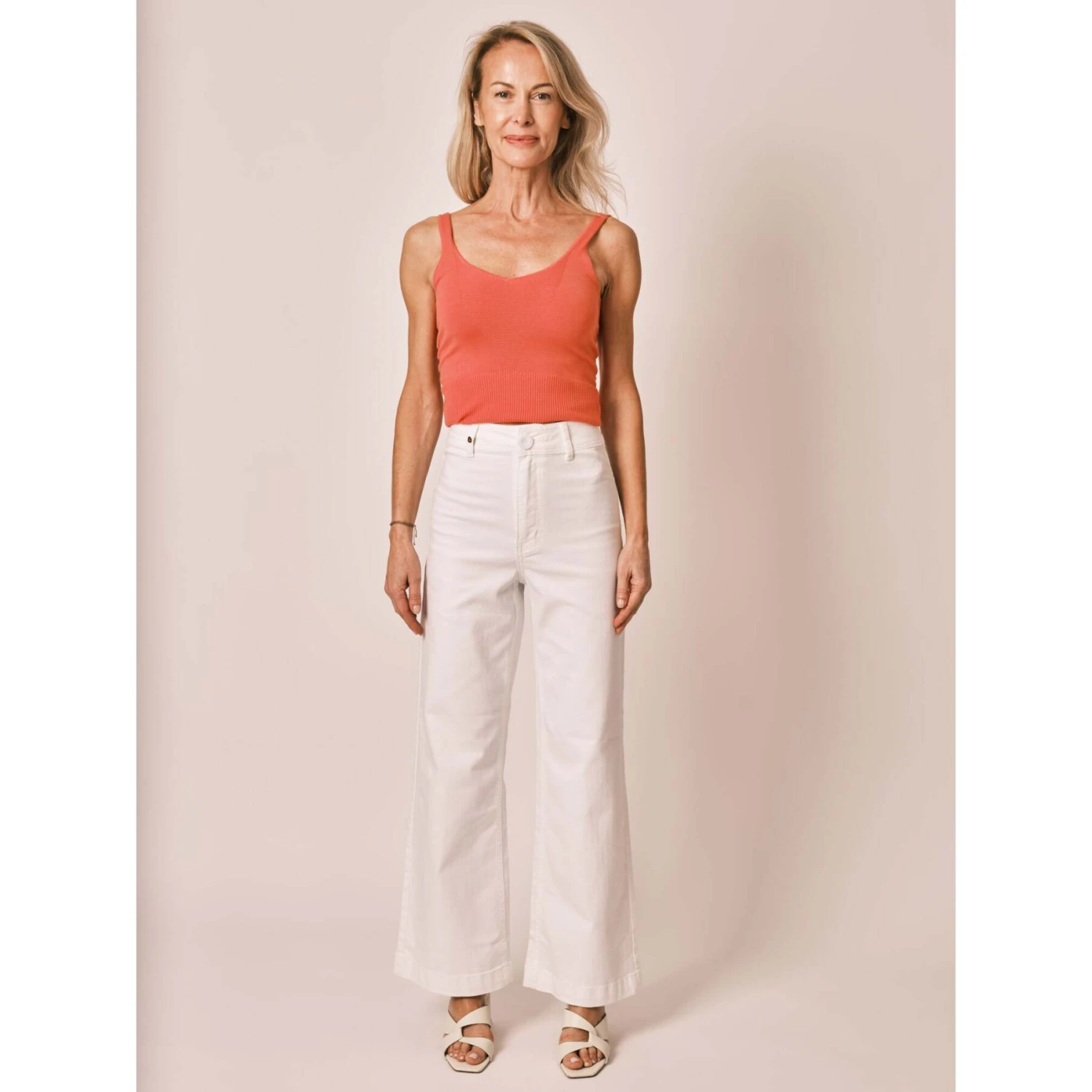 Met zijn hoge taille en uitlopende snit voegt FAUVE in het wit katachtige zachtheid toe aan je garderobe.