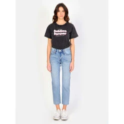 Damesmodel Lichtblauwe Stretch Katoenen Bootcutjeans Met Gemiddelde Taille F.A.M. Paris Bella