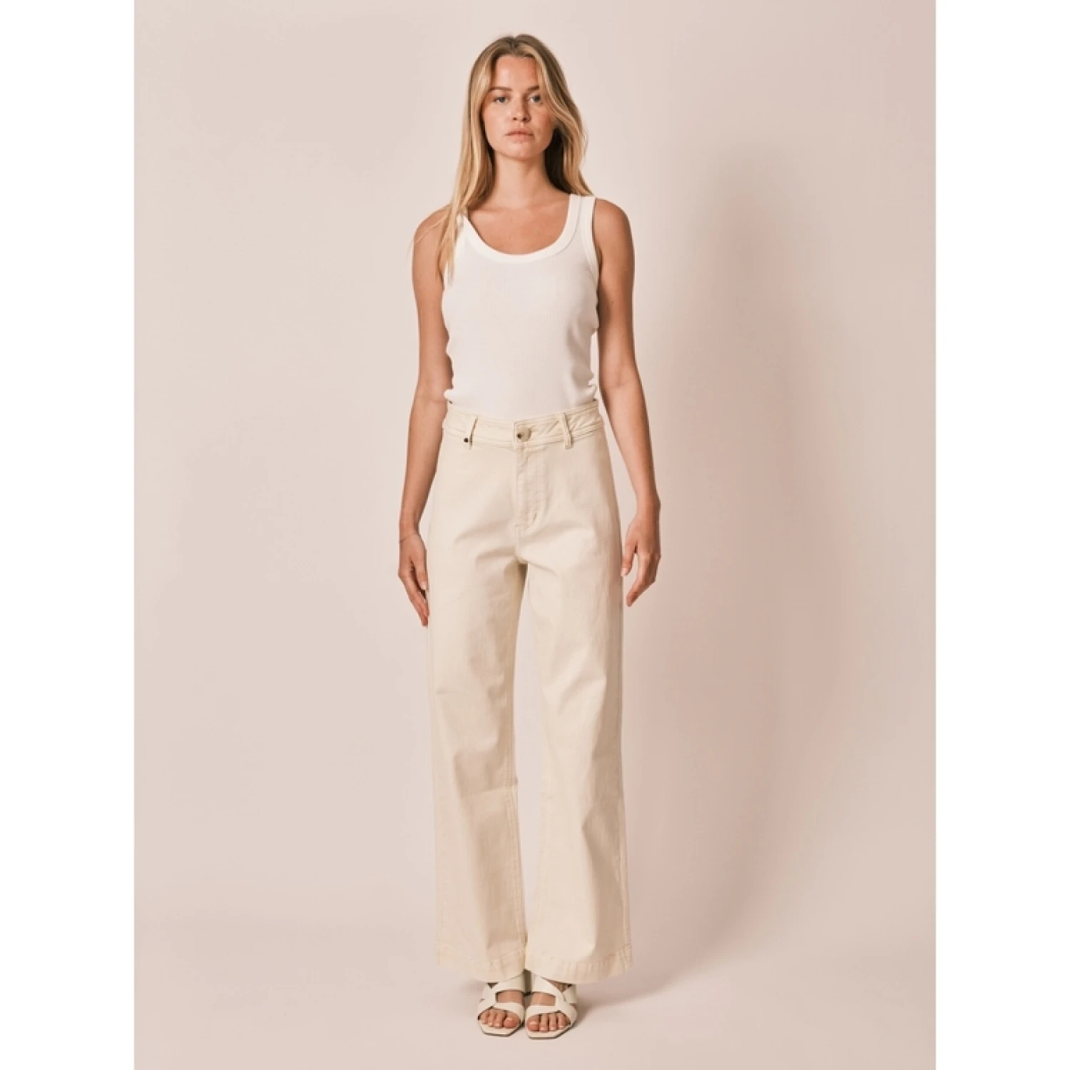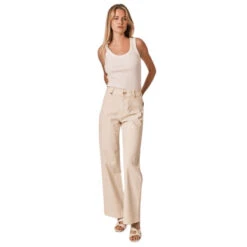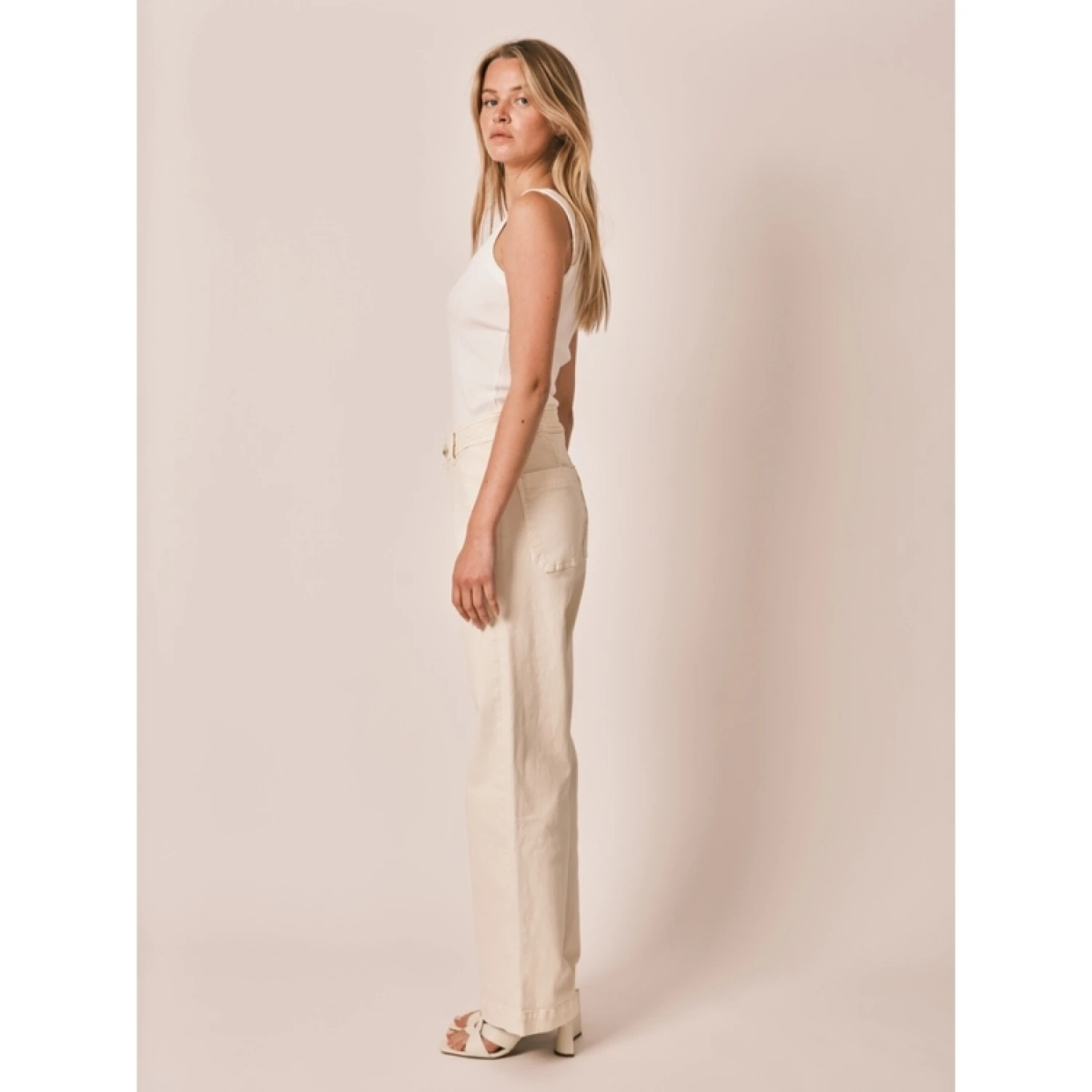Met zijn hoge taille en uitlopende snit voegt FAUVE beige katachtige zachtheid toe aan je garderobe.