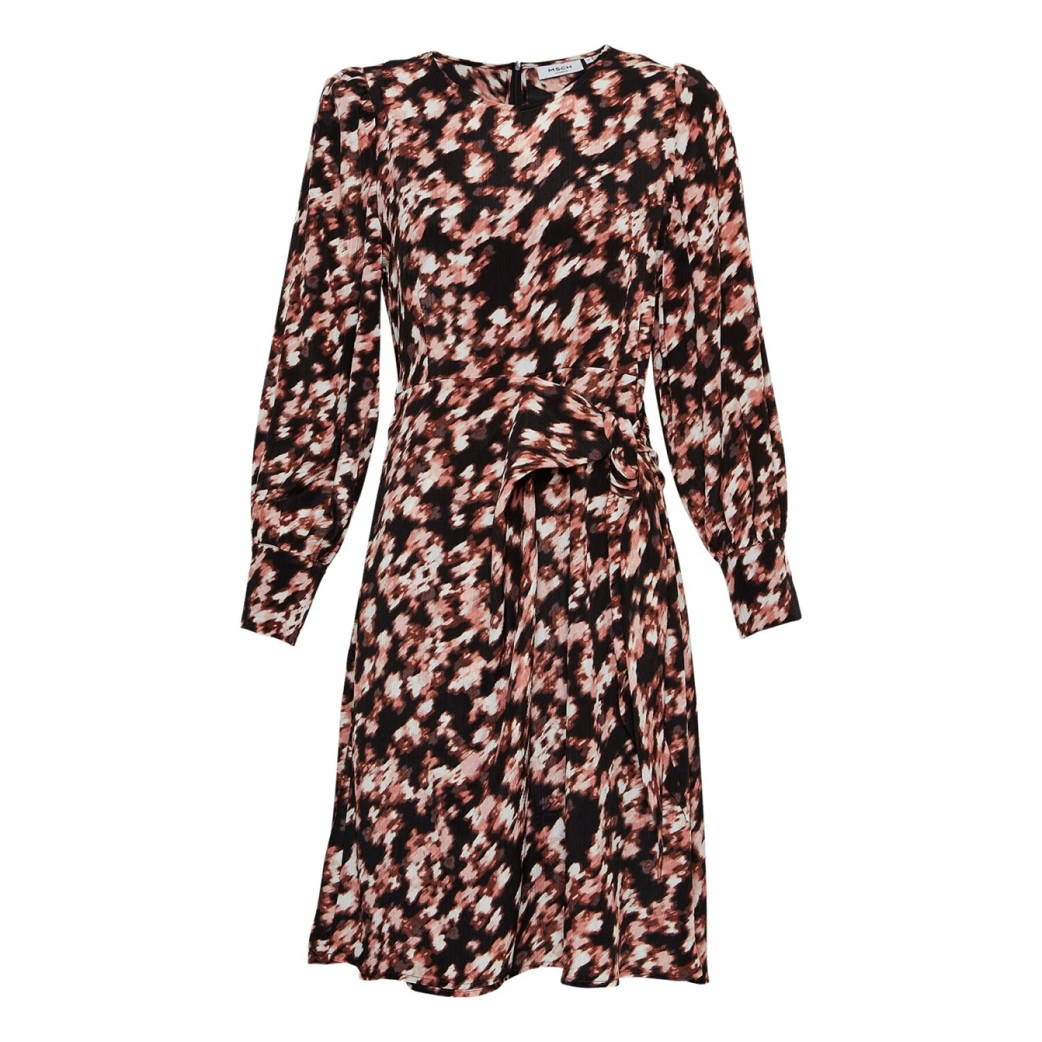 Deze jurk heeft een normale pasvorm met een elastische tailleband.