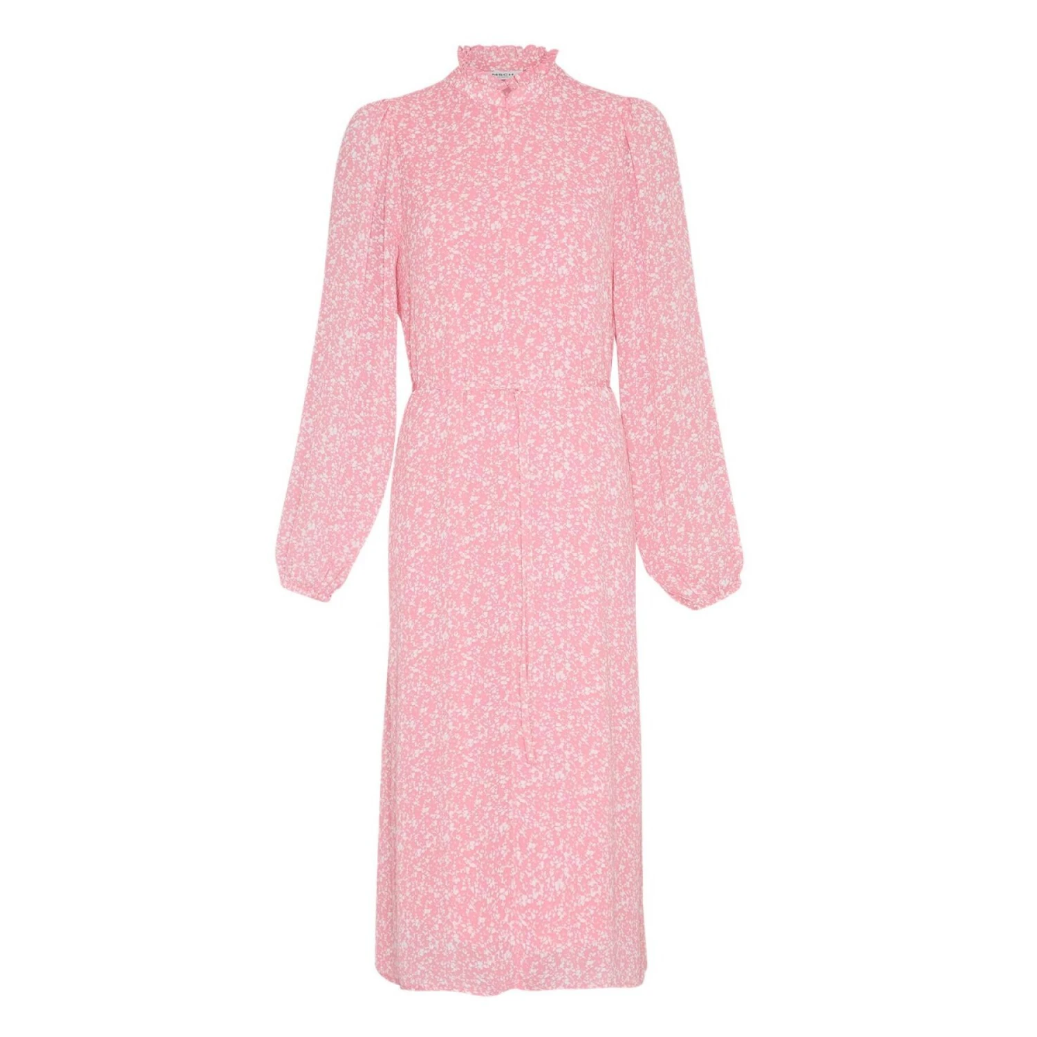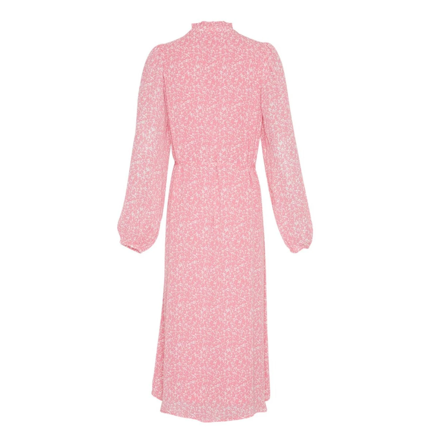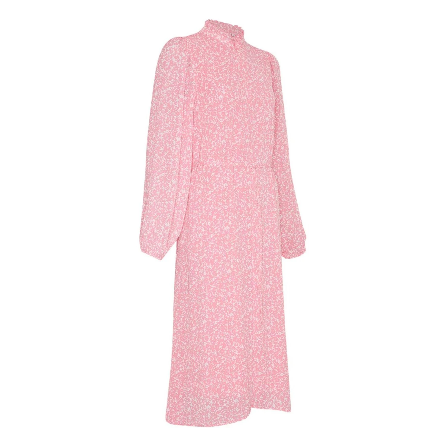 Lange, vloeiende jurk met all-over print. Ideaal voor de overgangsperiode en op vele manieren te stylen. De jurk heeft een ritssluiting bij de buste en ruches bij de hals. Om uw look beter tot zijn recht te laten komen, kunt u de bindceintuur losser of strakker maken, zodat uw silhouet beter uitkomt.