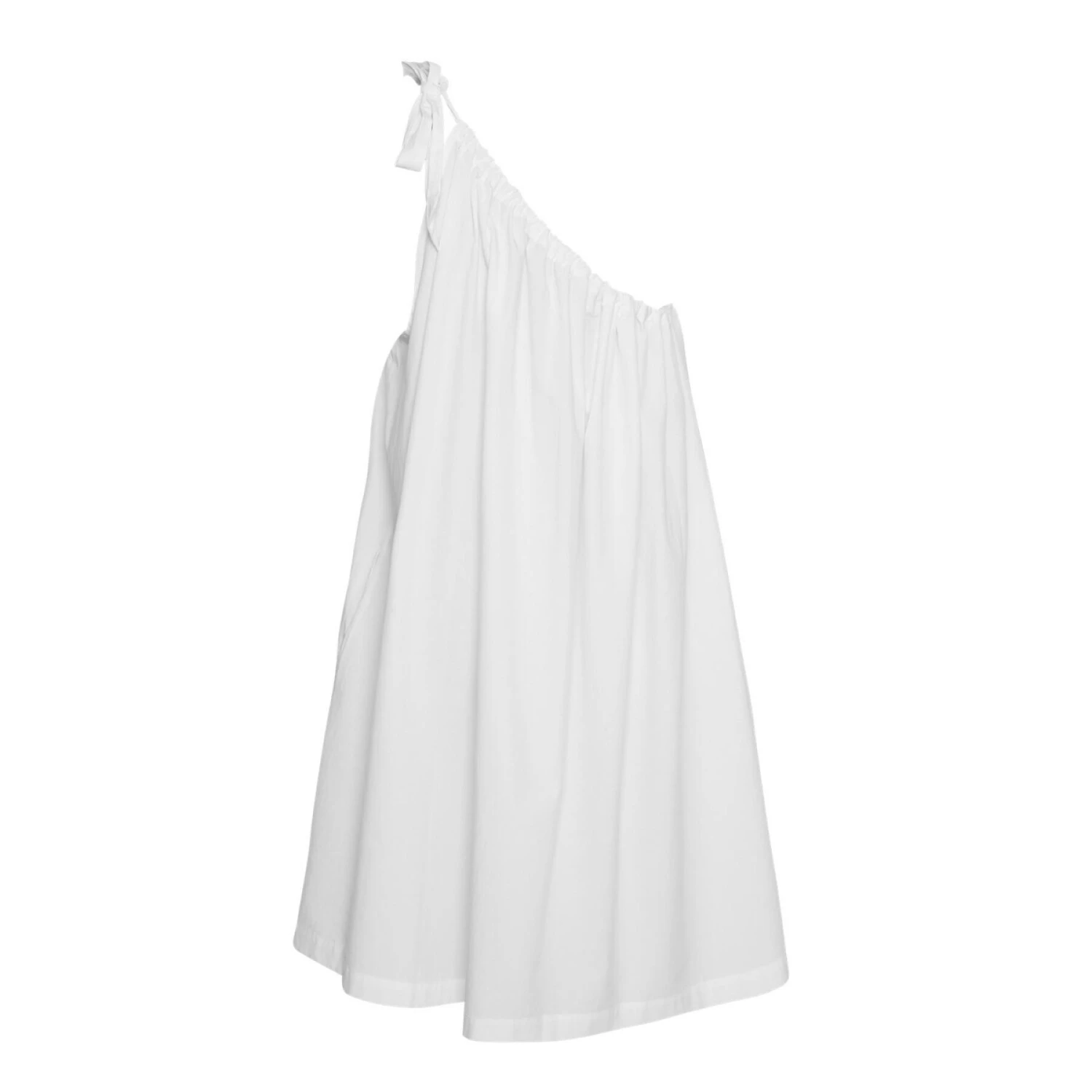 Makkelijk om overdag of ’s avonds te dragen. De knielengte en steekzakken geven het een ontspannen look gevoel in een volumineuze snit. Met zijn one-shoulder halslijn, verstelbare schouderband afgewerkt met een mooie strik en minimalistische stijl wordt het jouw ultieme zomerjurk met maximaal comfort.