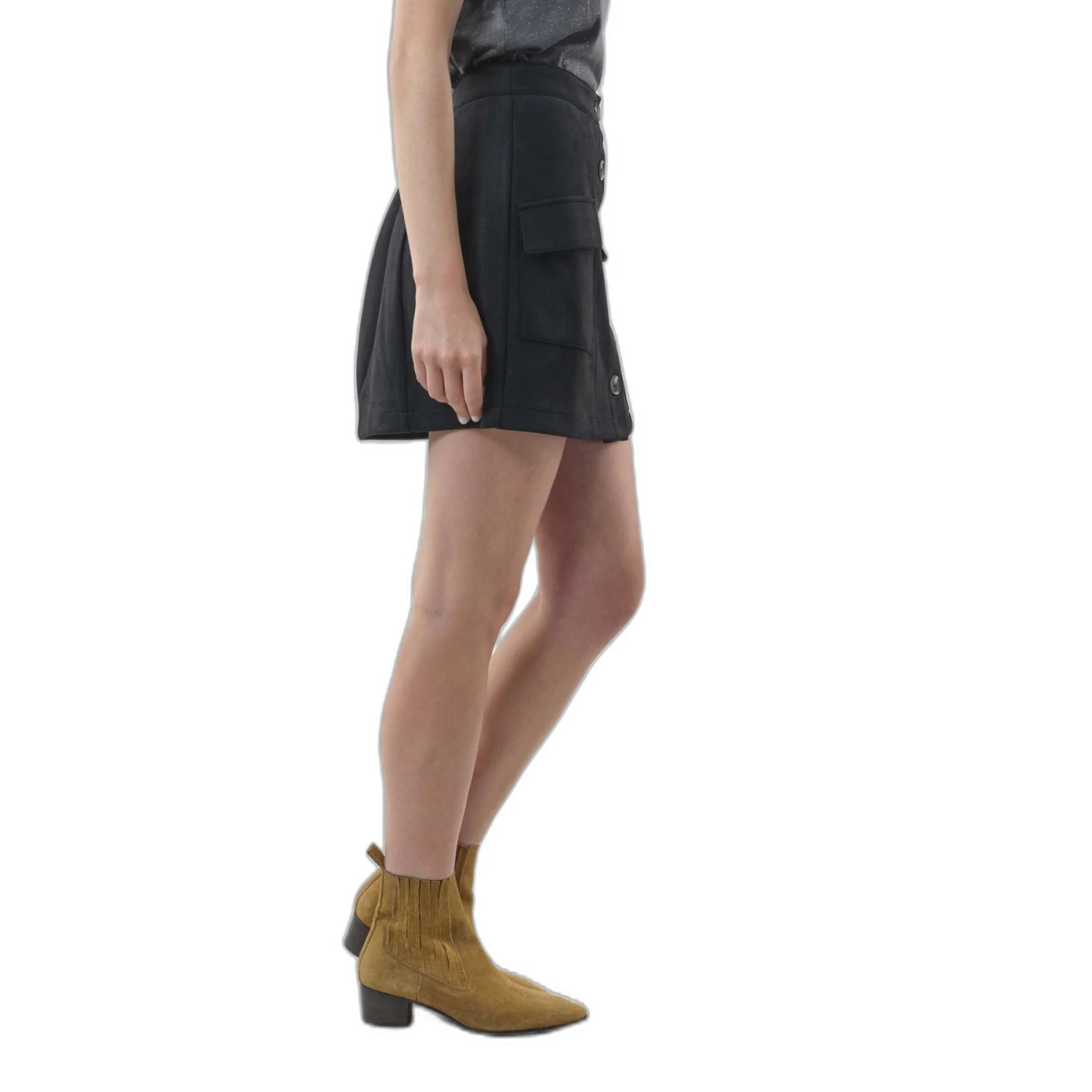 Zeer trendy, de trapeze rok is een ideaal stuk om uw silhouet te sublimeren! Ontdek ons model VALENTINA in suède, geknoopt aan de voorkant. Wij dragen het graag in het tussenseizoen, met een gebreide trui en een paar hoge laarzen.