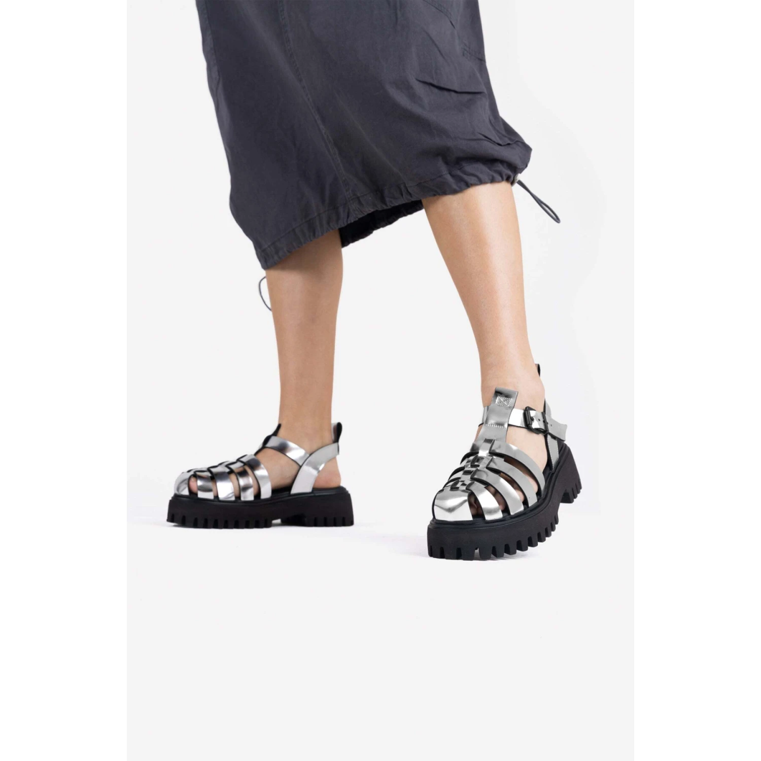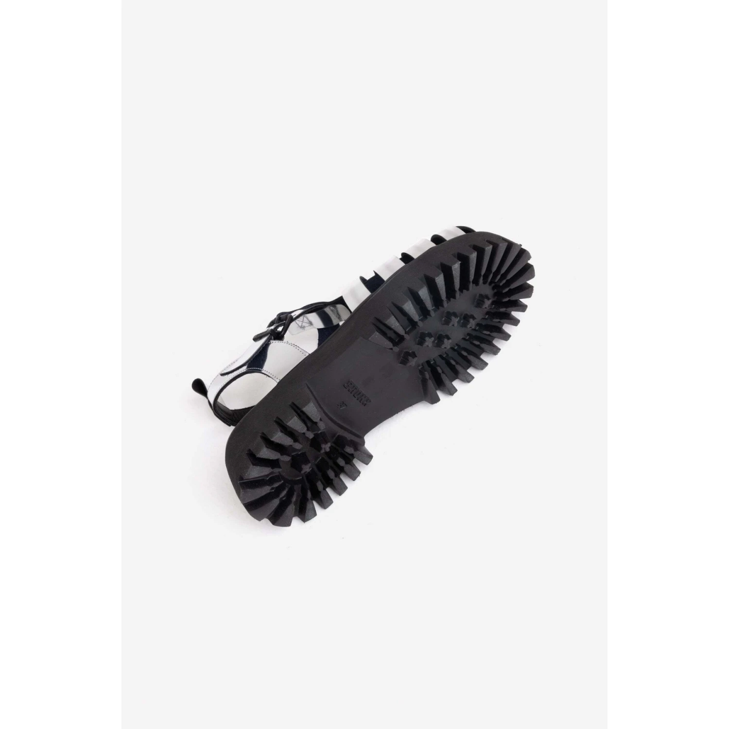 Deze handgemaakte muiltjes zijn geïnspireerd op retro visserensandalen en maken dit seizoen een comfortabel fashion statement! De zachte voering van gelamineerd leer en de gemerkte oogjes BRONX maken van deze muiltjes een echte detailaffaire. Uitgevoerd in ton-sur-ton zwart, off-white en metallic zilver, zullen deze GROOV-Y sandalen elke outfit naar een modieus niveau tillen.