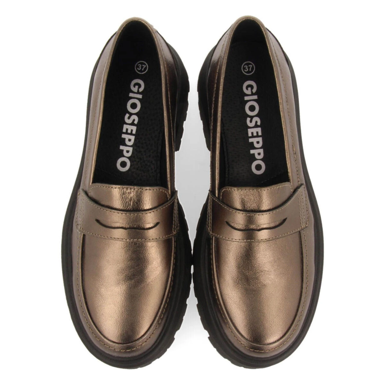 Metallic loafers van loodkleurig leer. Dikke spoorzool. Leren zool en voering gelooid met een duurzamer looiproces dat voldoet aan de normen van Leather Working Group. Zool zwaar opgevuld met latex voor meer comfort. Mis de nieuwe FW23 collectie mocassins van Gioseppo Woman niet.