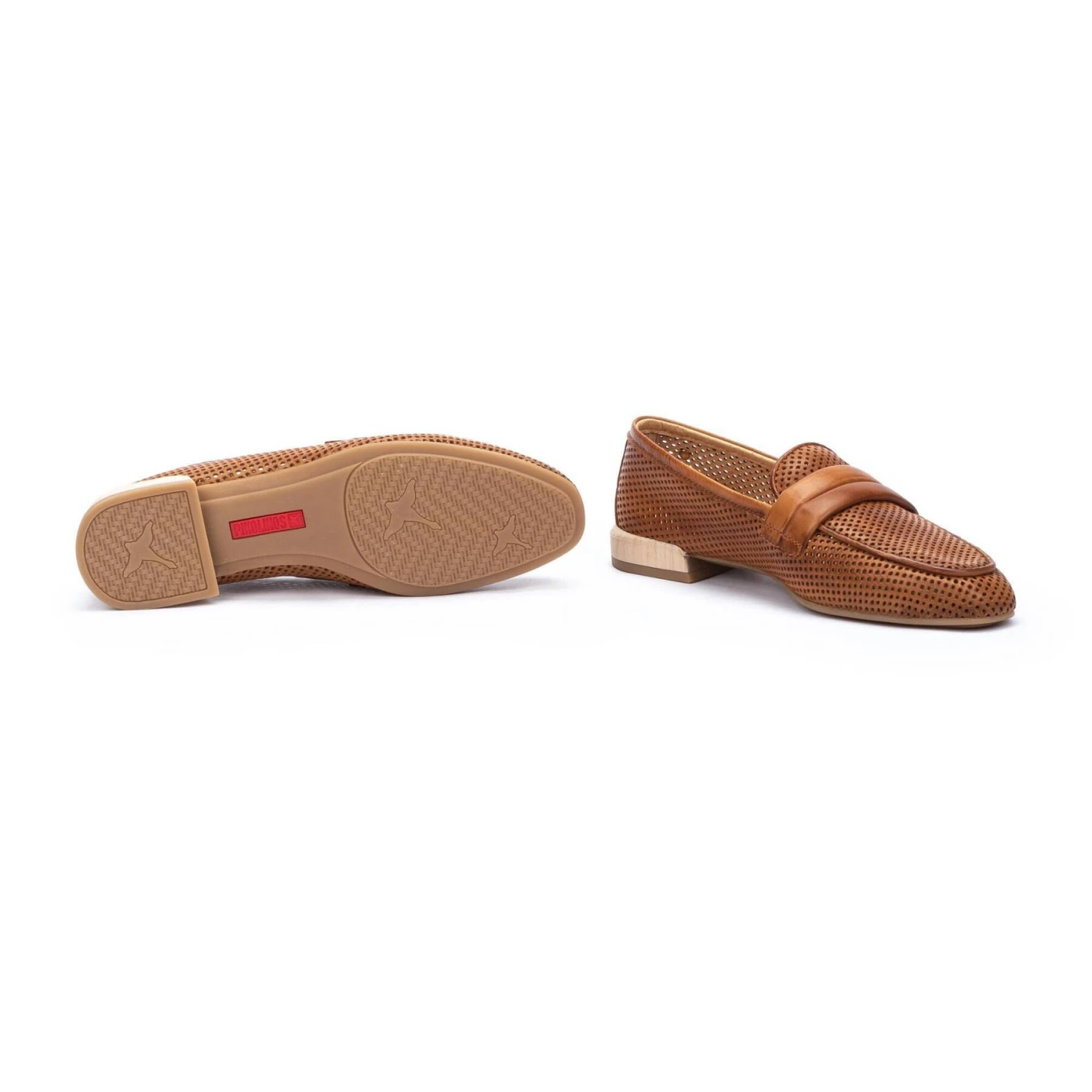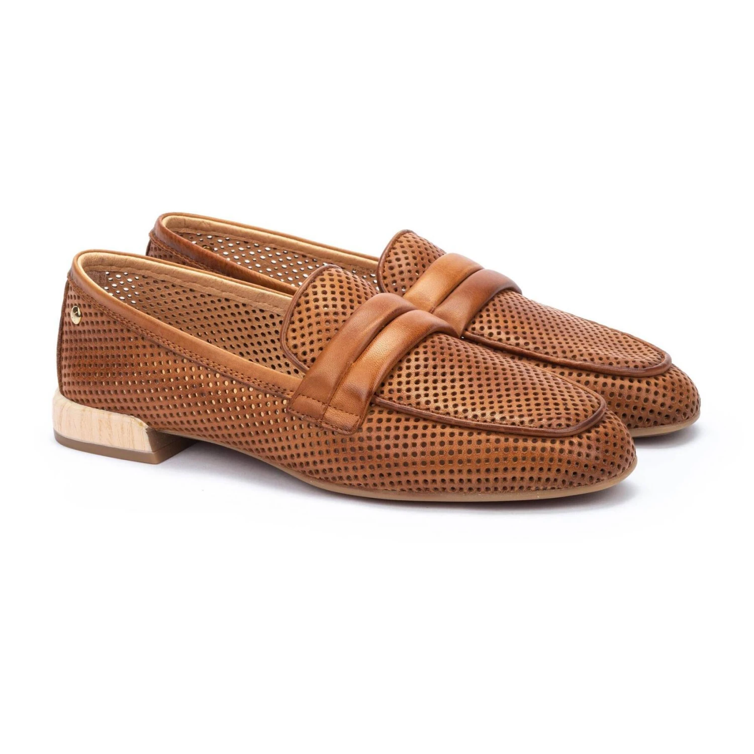 Een lijn van zeer vrouwelijke geklede schoenen die spelen met leer met textuur.