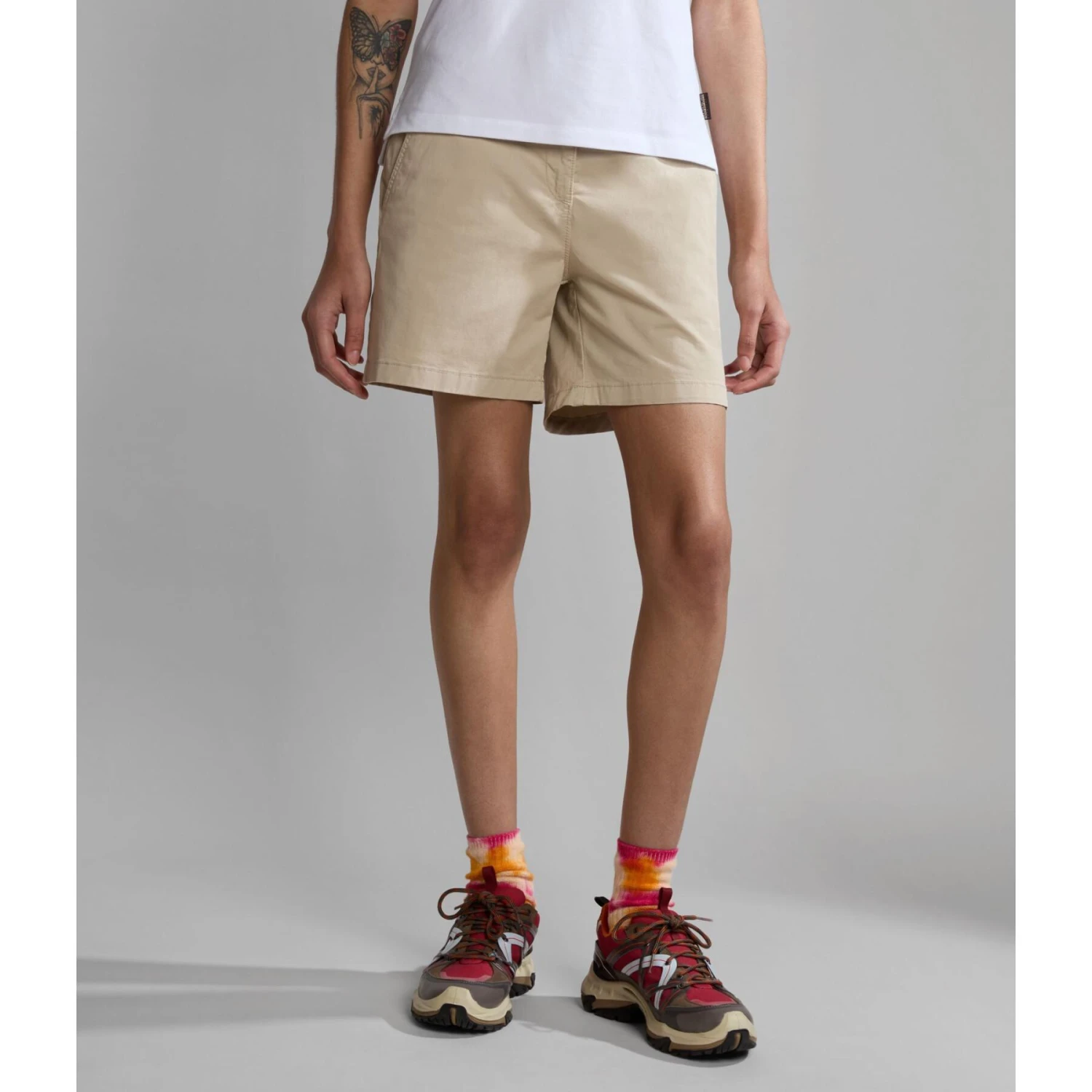 Het buitenleven heeft zojuist zijn nieuwe functionele metgezel verwelkomd met de Narie Bermuda voor dames. Deze klassieke short biedt het ultieme comfort met een stretchkatoenen samenstelling en is voorzien van een rits- en knoopsluiting en riemlussen voor een perfecte pasvorm.