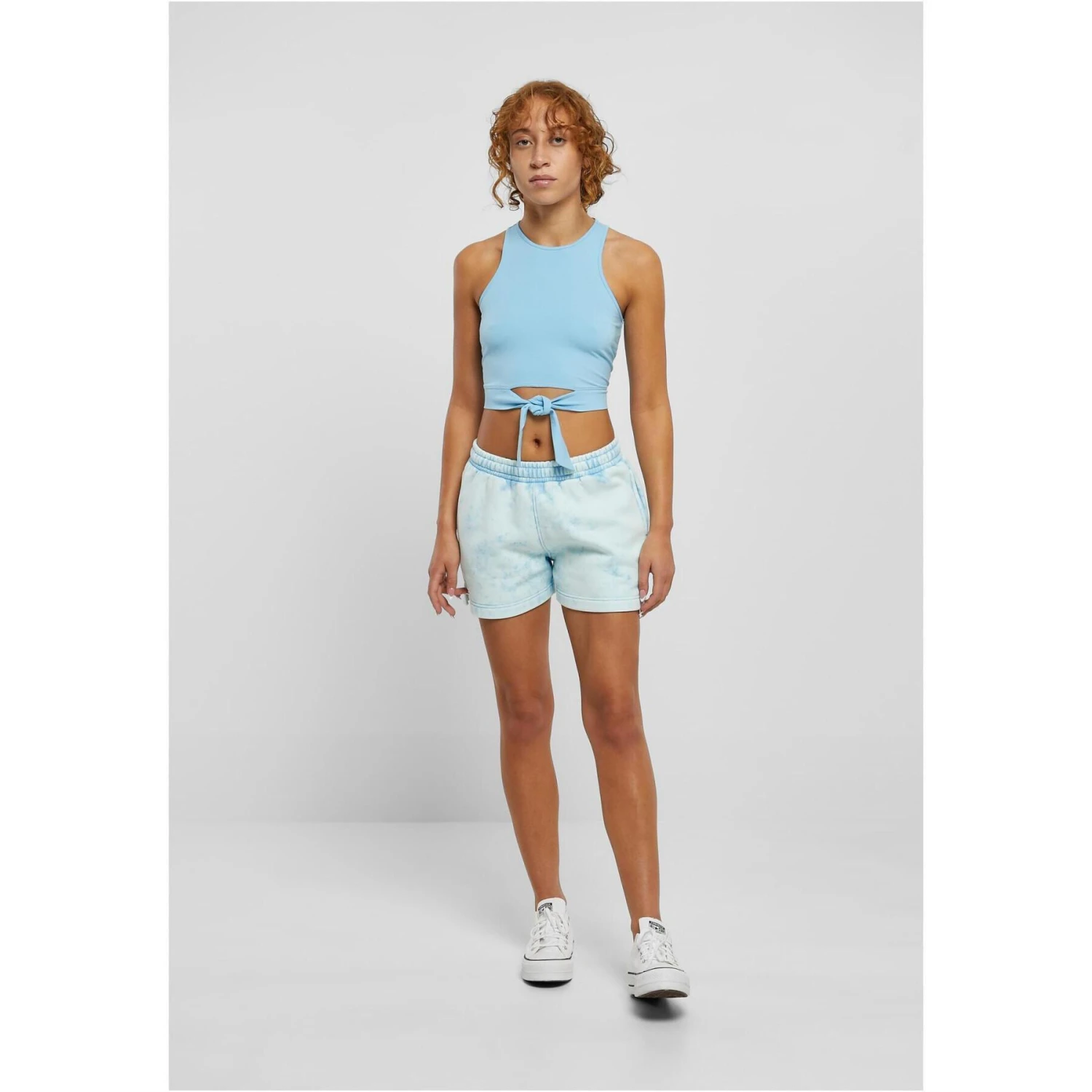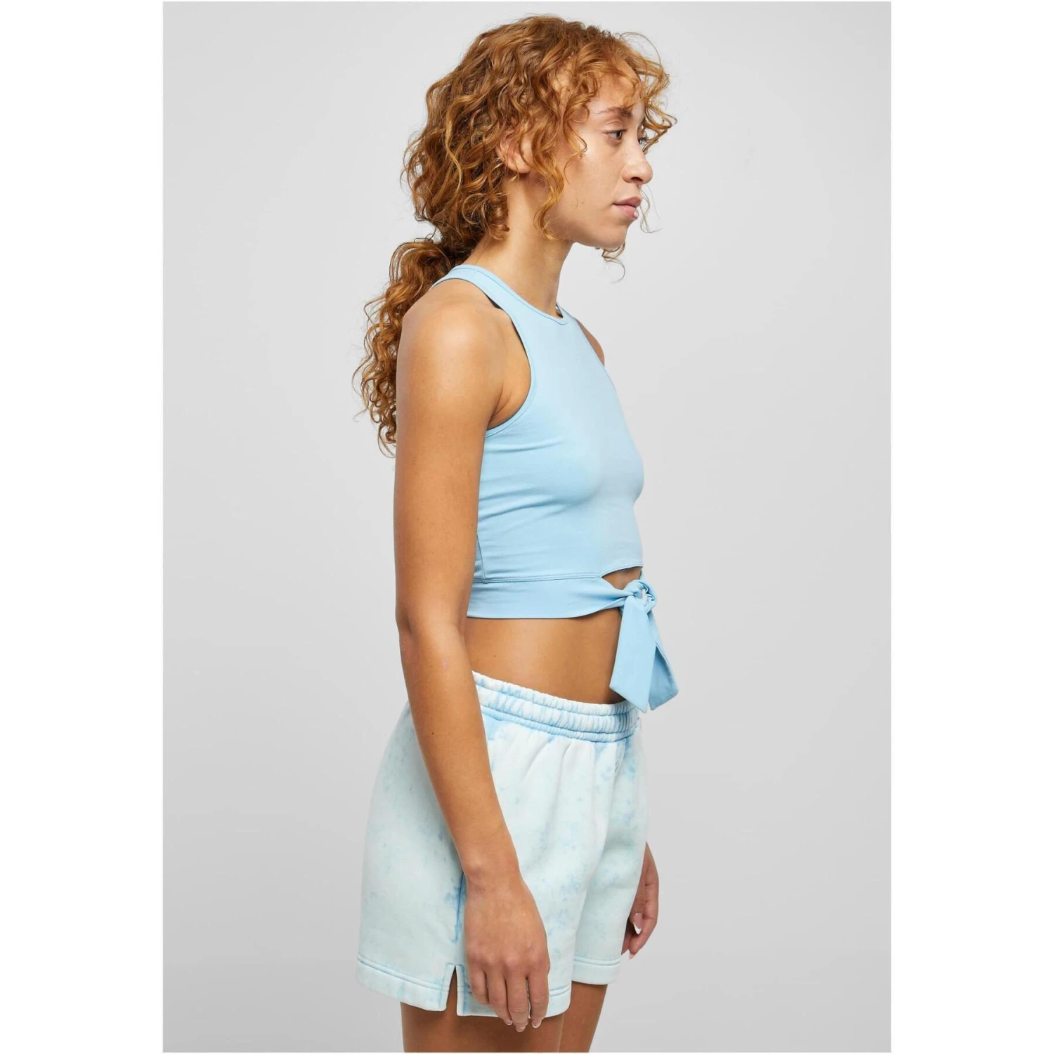 De look van deze sportieve top en court voor dames toont een authentieke stijl. Het heeft een dynamische zwemrug met veel vrijheid achter en voor en een ronde halslijn. De speelse details zijn twee linten die samenkomen in een strik boven de navel. Deze eenkleurige damestop is gemaakt van soepel, licht rekbaar katoen. De pasvorm is slank en nauwsluitend.