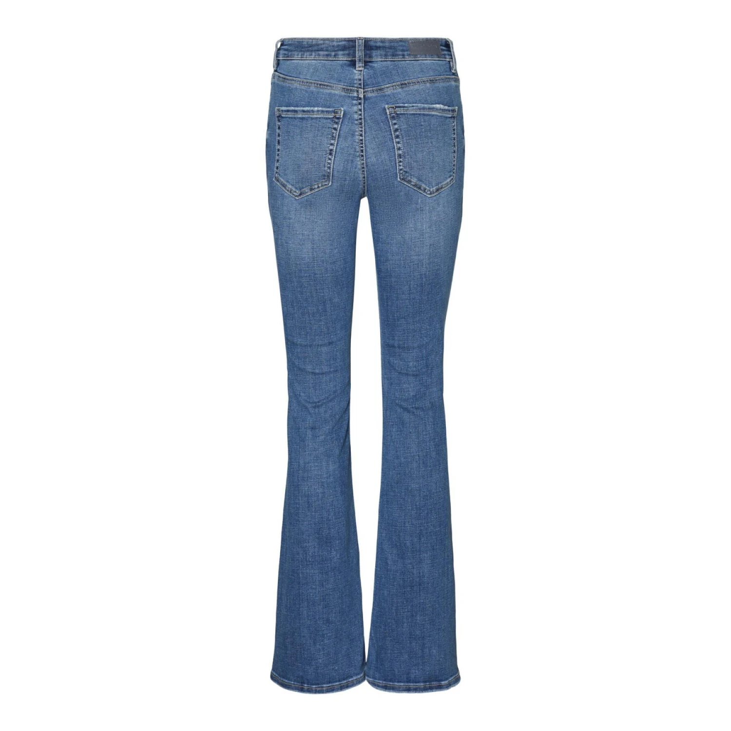 LDS GEWEVEN JEANS – MID RISE – FLARED FIT – FIVE ZAKKEN – NORMALE ZOOM – MEDIUM BLUE DENIM