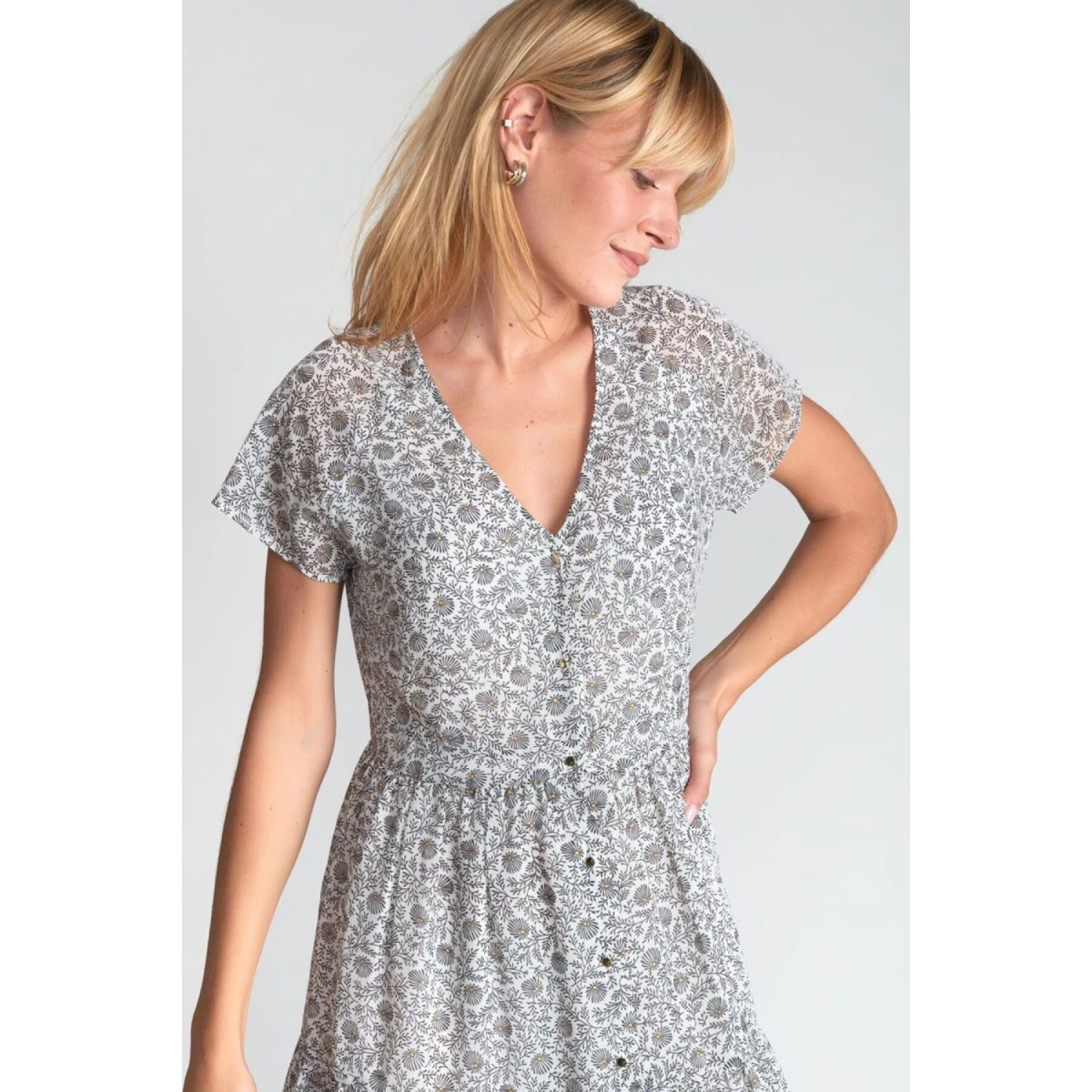 Het merk Le Temps des cerises staat bekend om zijn kwaliteitskleding, die zowel modern als tijdloos is. Met de Chardon damesjurk met korte mouwen ben je verzekerd van een stuk dat lang meegaat en de seizoenen doorstaat zonder iets van zijn charme te verliezen.
