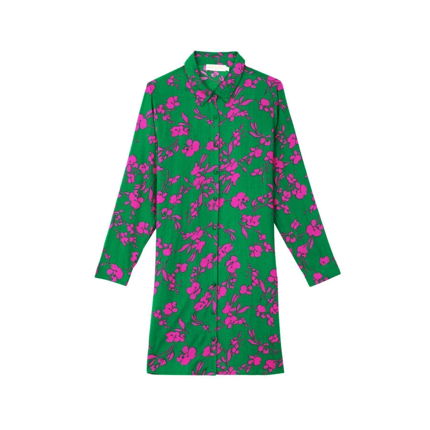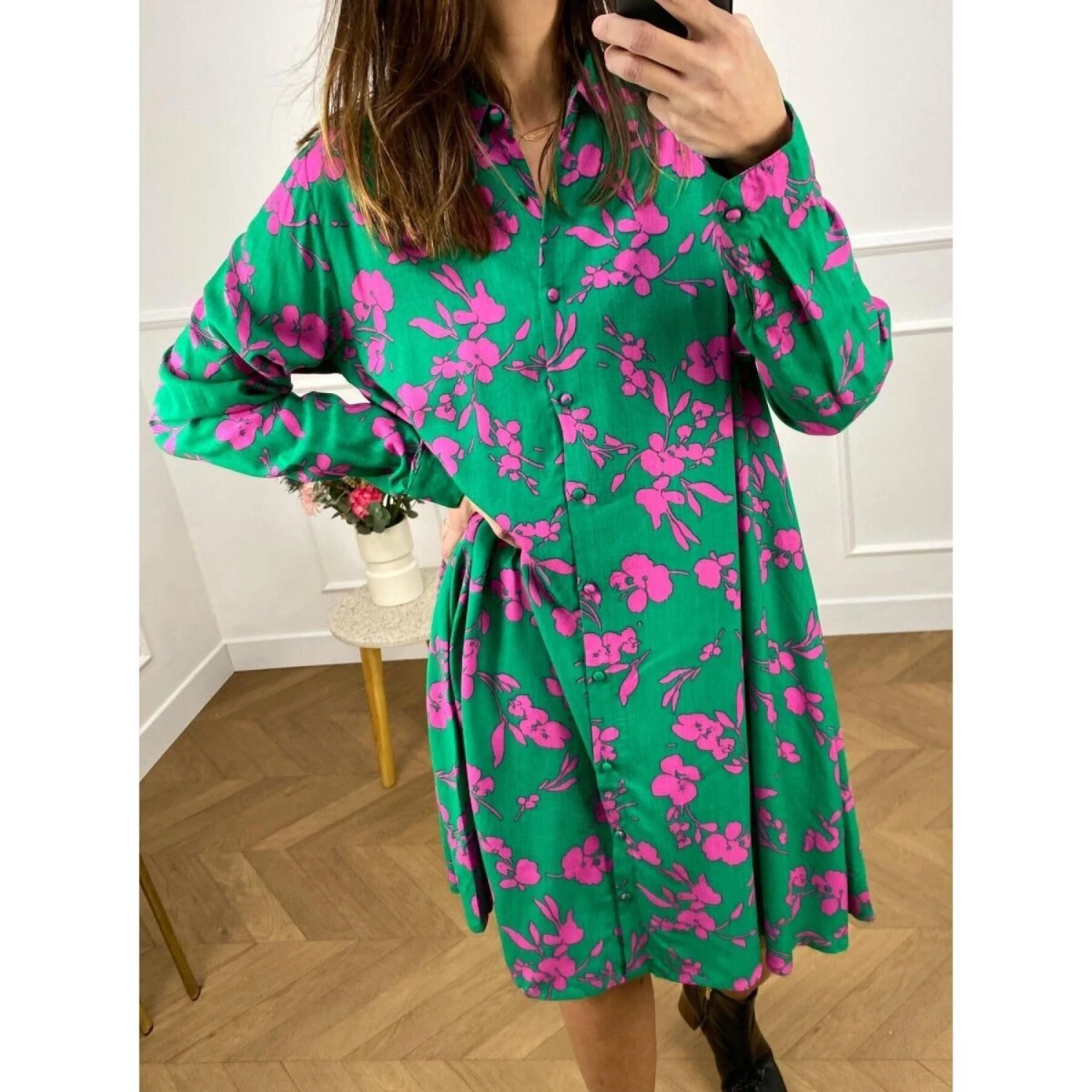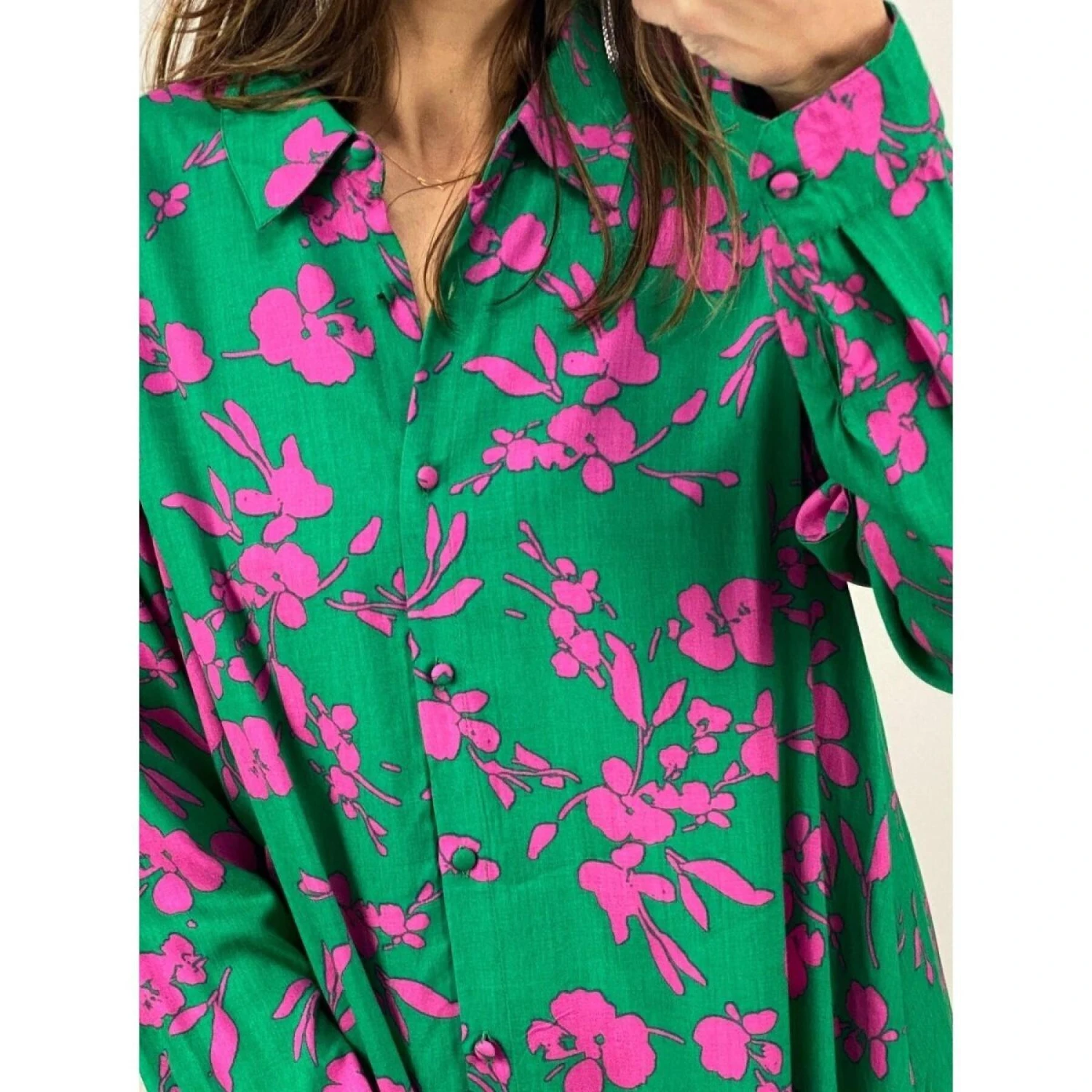 Het unieke ontwerp van onze Kari jurk trekt uw aandacht met zijn bloemenprint op een weelderige achtergrond. De lange mouwen en overhemdkraag geven het een unieke stijl die zowel modern als tijdloos is.