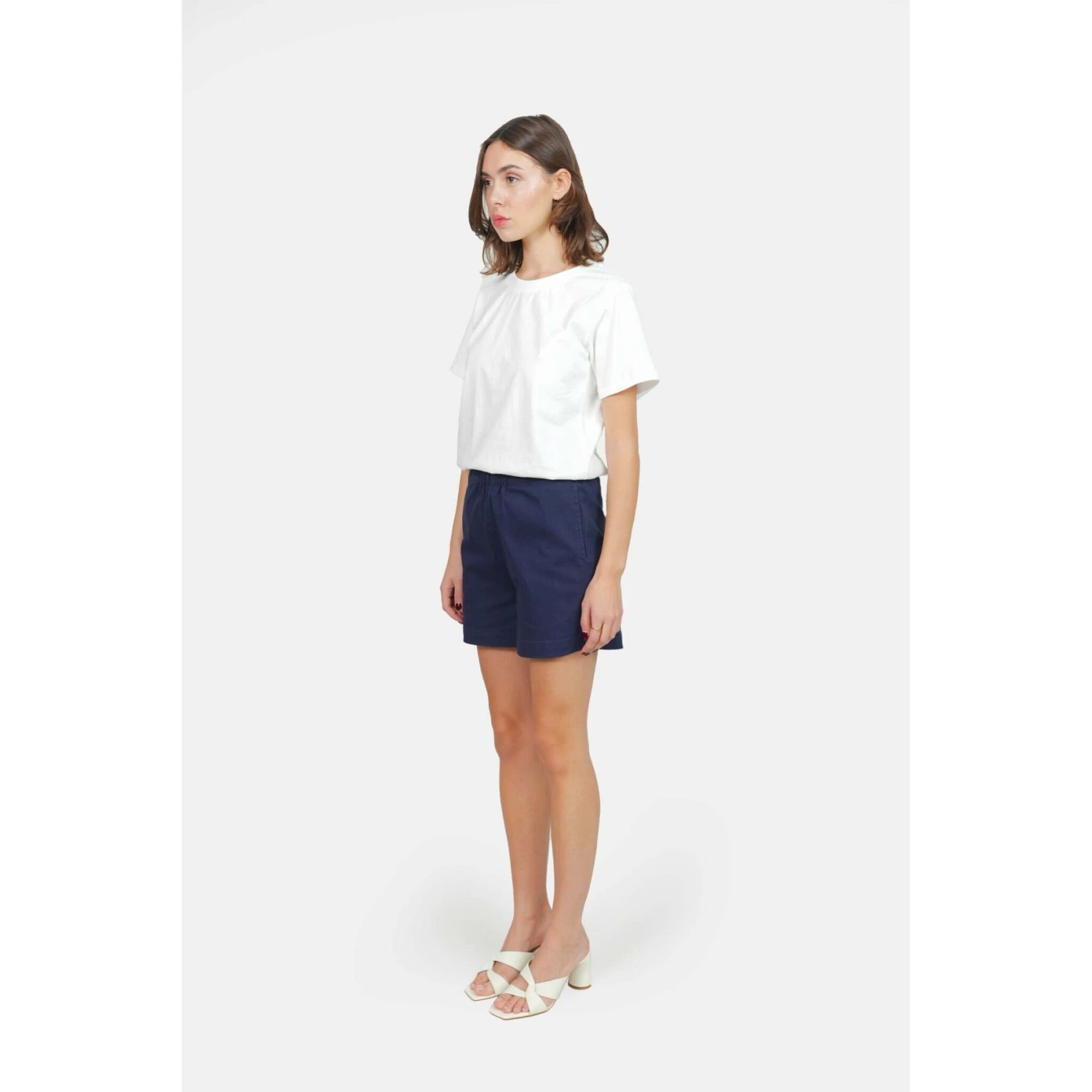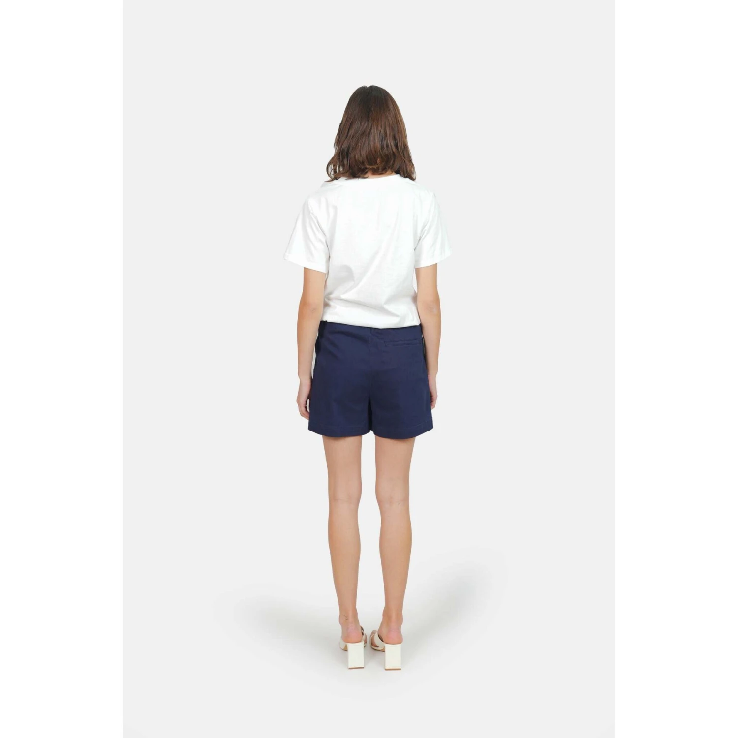 Onze marineblauwe ABBY shorts zijn ideaal als je een sportieve chique look look wilt. De snit houdt je comfortabel op warme zomerdagen.
