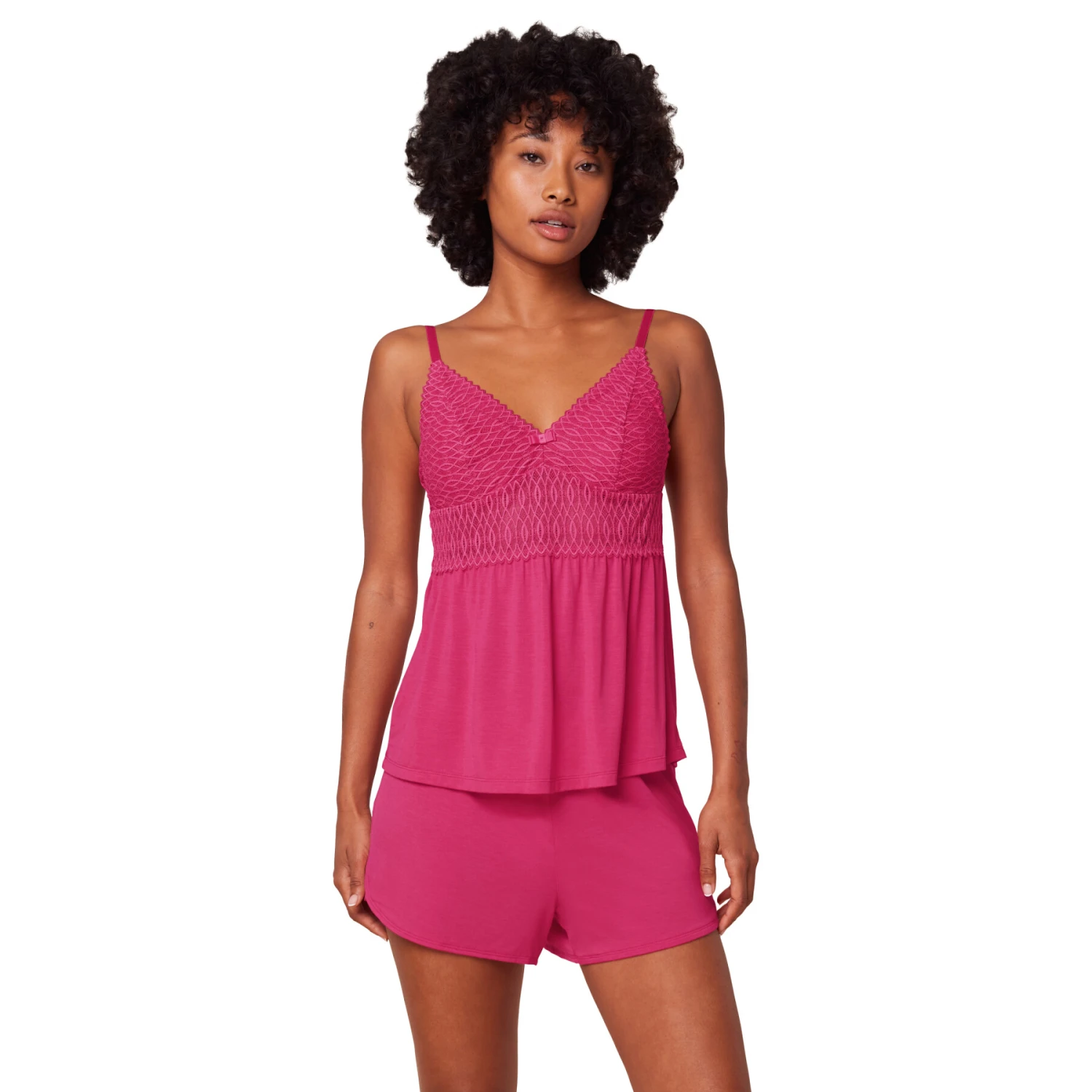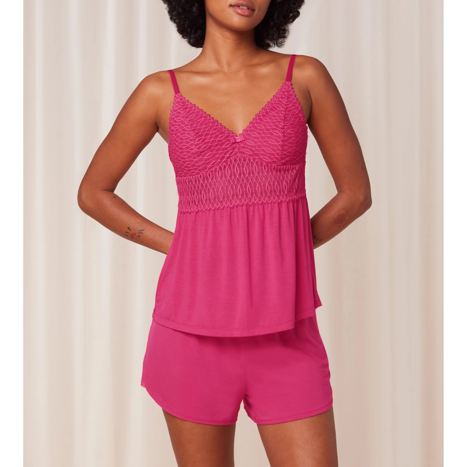 Mooie nachtkleding voor een comfortabele nachtrust. De short is gecombineerd met een flatterende top en heeft kanten uitsnijdingen voor een beter ademend…