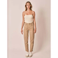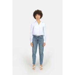 Damesmodel Lichtblauwe Stretch Katoenen Bootcutjeans Met Gemiddelde Taille F.A.M. Paris Bella
