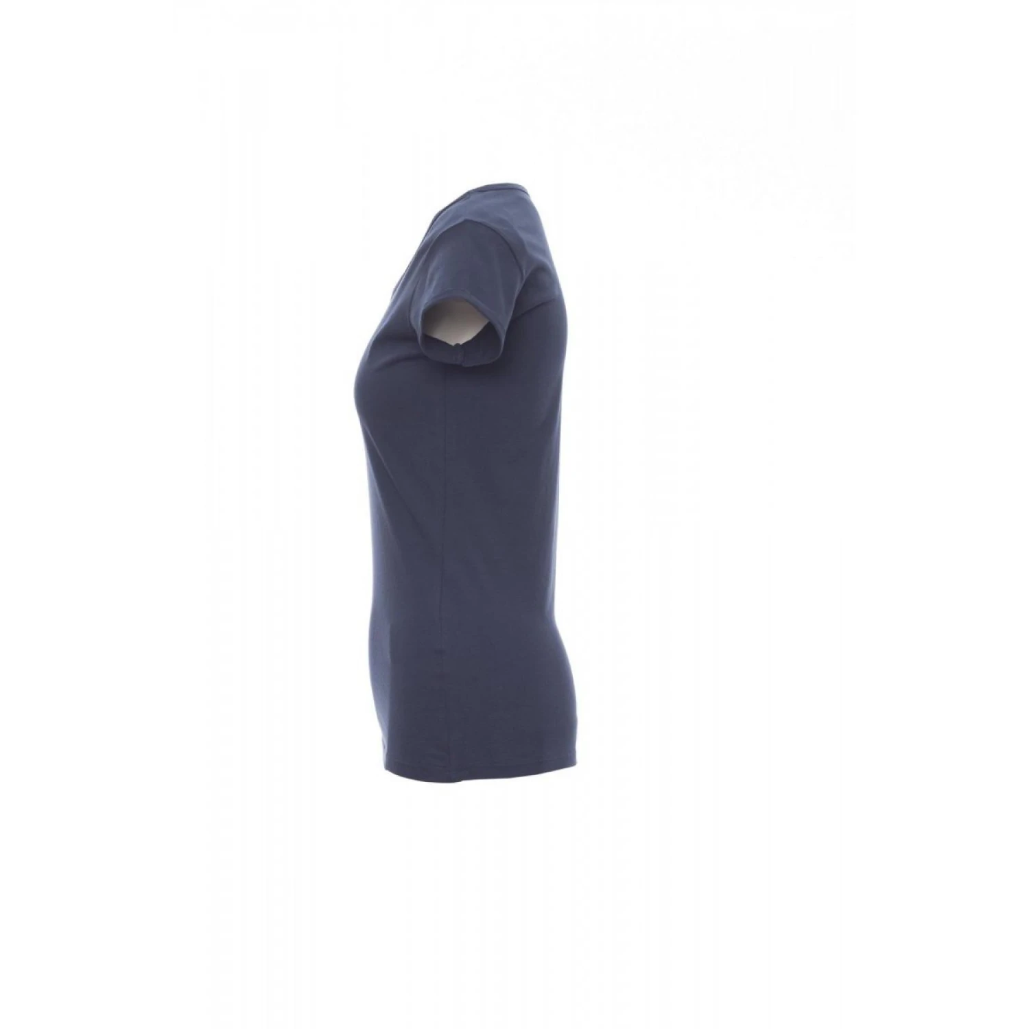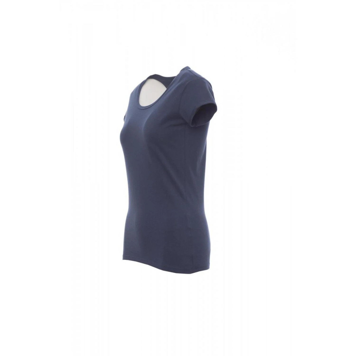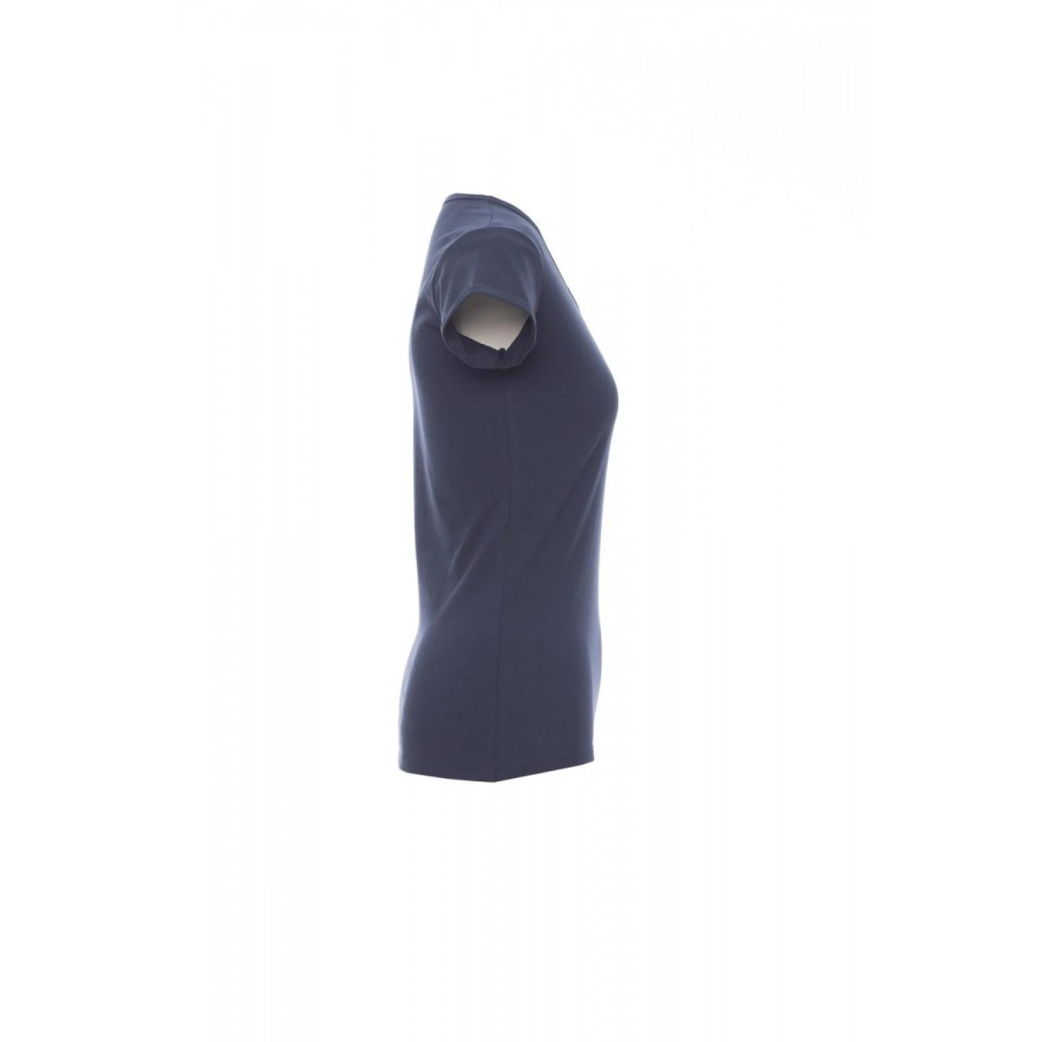 Slank gesneden dames-T-shirt met korte mouwen en een ietwat losse ronde hals, kraag met fijne rand, mouwafwerking met fijne revers met scherpe rand, zijdelingse naden