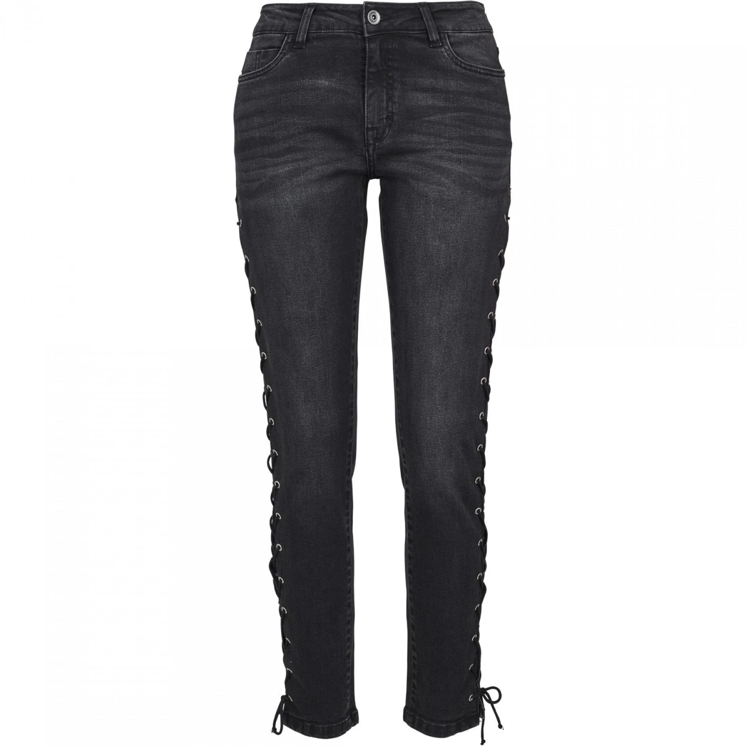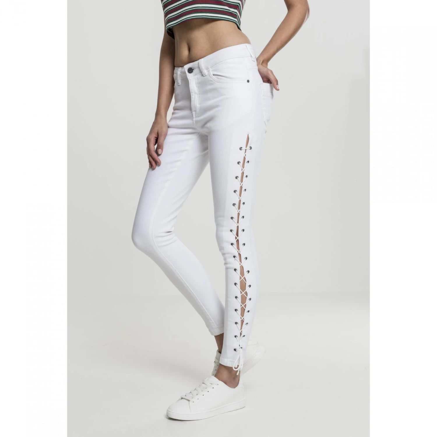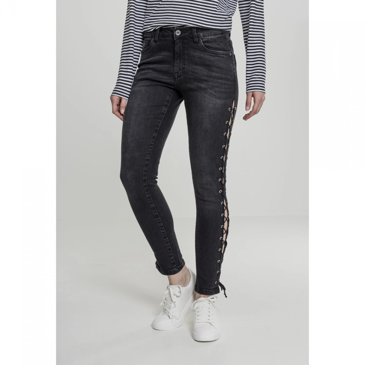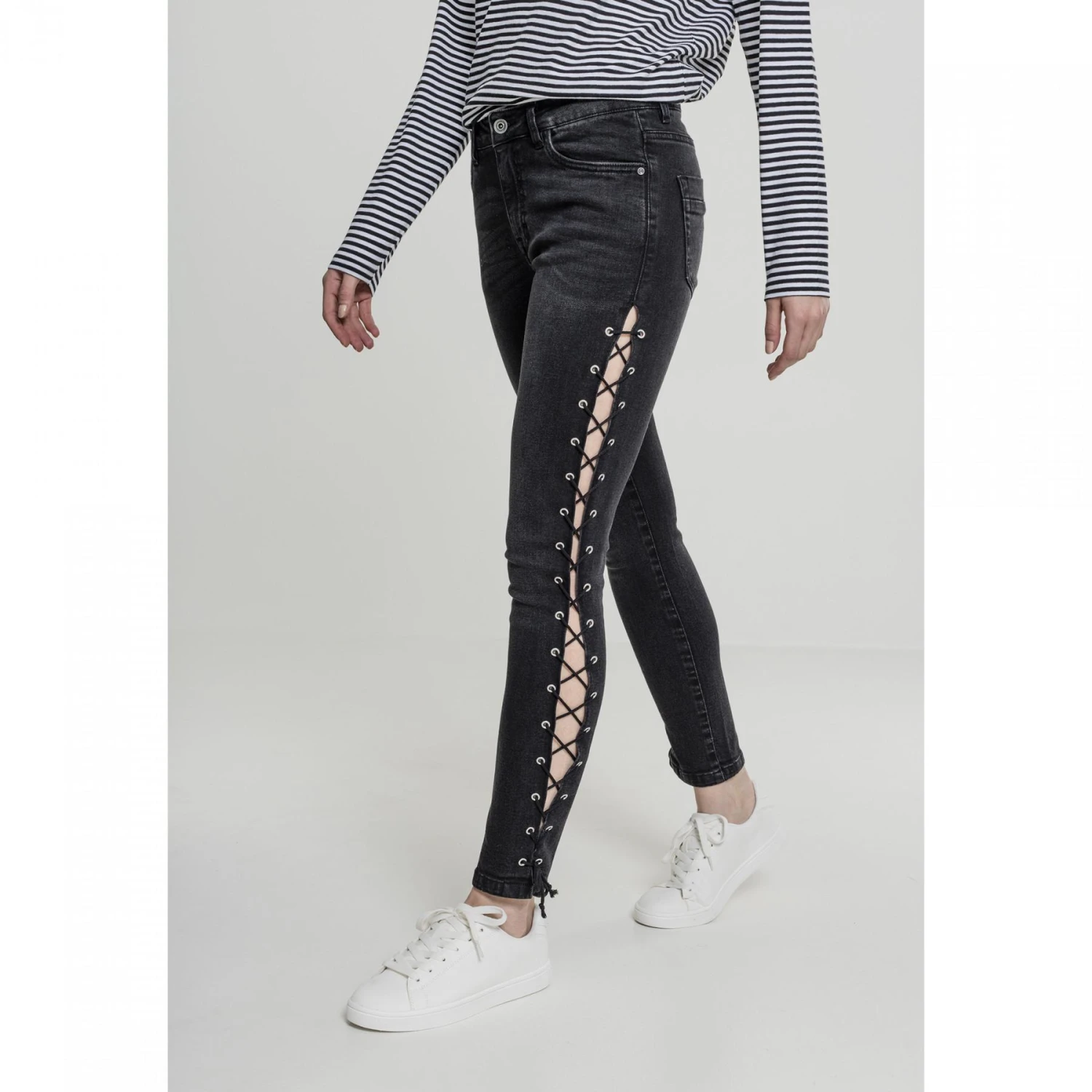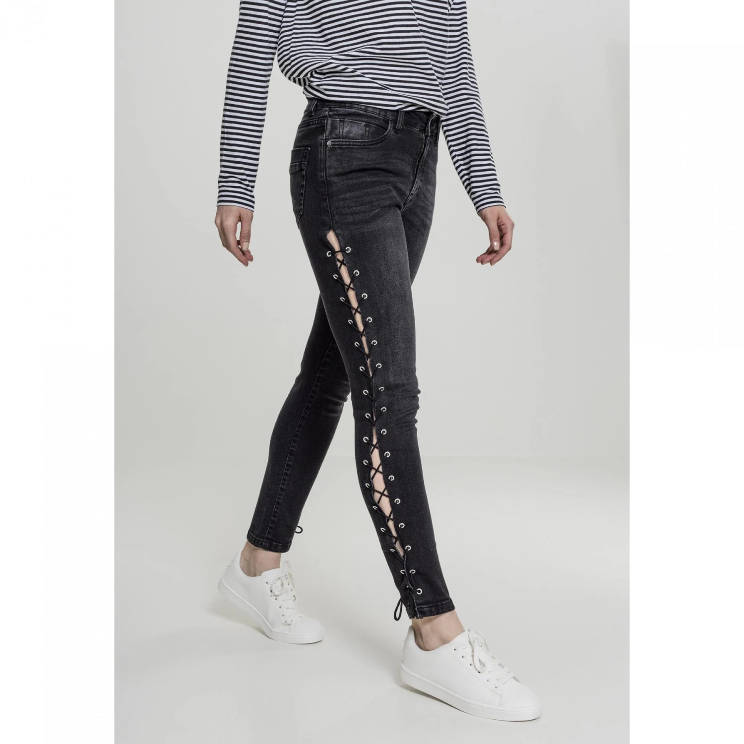 Hoge taille, slanke en comfortabele snit, en veters aan de zijkanten: deze jeans met hoge taille laat zien waar het bij urban fashion om draait. Een jeans die elke garderobe verrijkt met gemak en stijl.