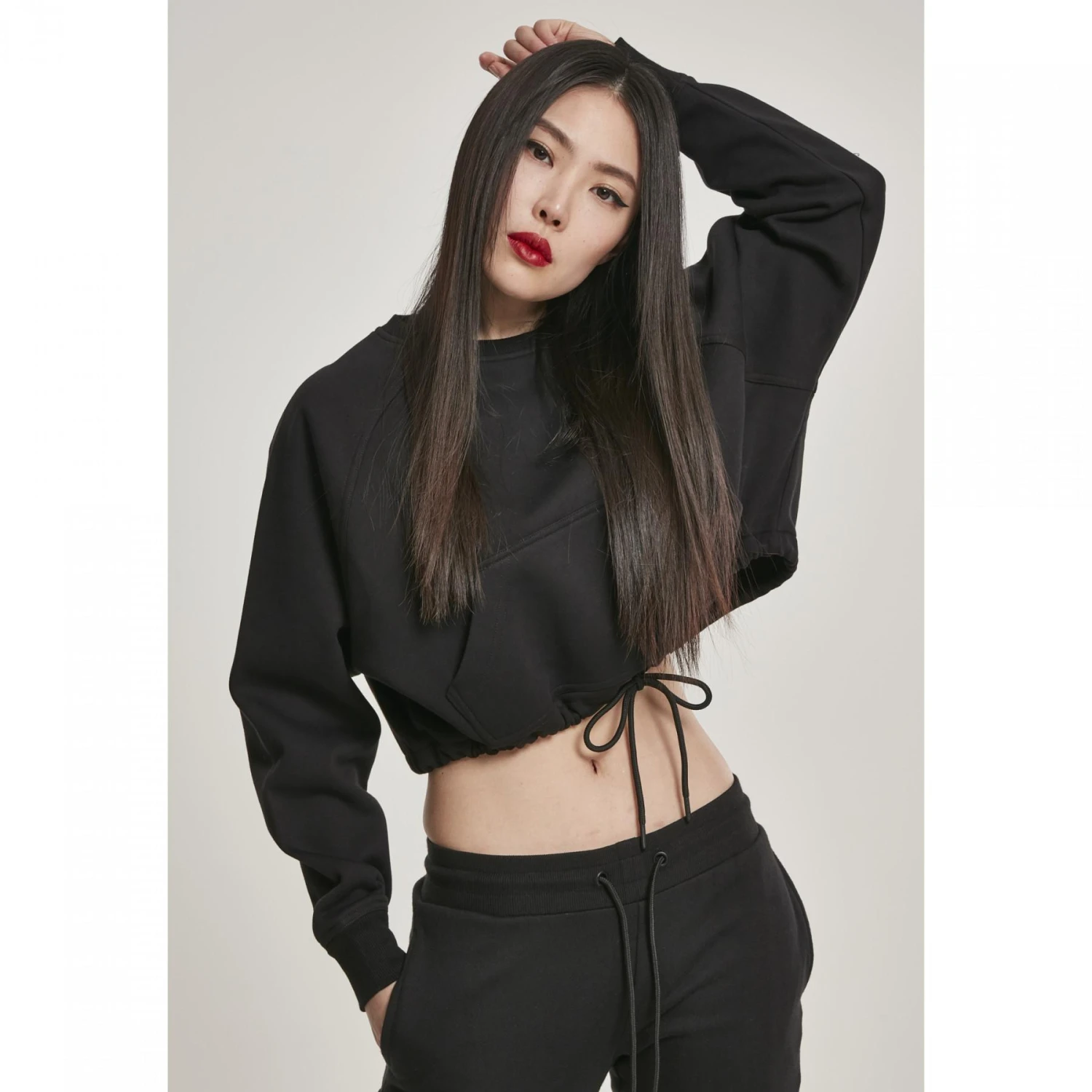 Een lichtgewicht trui, urban als het maar kan, om de stad mee rond te gaan. Deze raglan met lange mouwen heeft tal van opvallende details en is zo kort gesneden dat u uw gevormde buik kunt laten zien. Door de zoom met trekkoord aan te passen, kunt u de stof naar wens rimpelen. De brede manchetten en de kangoeroezak bieden het comfort van een klassieke hoodie. Supercomfortabel ook: de raglan snit met naadloze schouders. Een lange mouw die alles in zich heeft om uw favoriete kledingstuk te worden.Oberstoff 1: 65% Baumwolle 35% Polyester, Fleece, 300 GSM