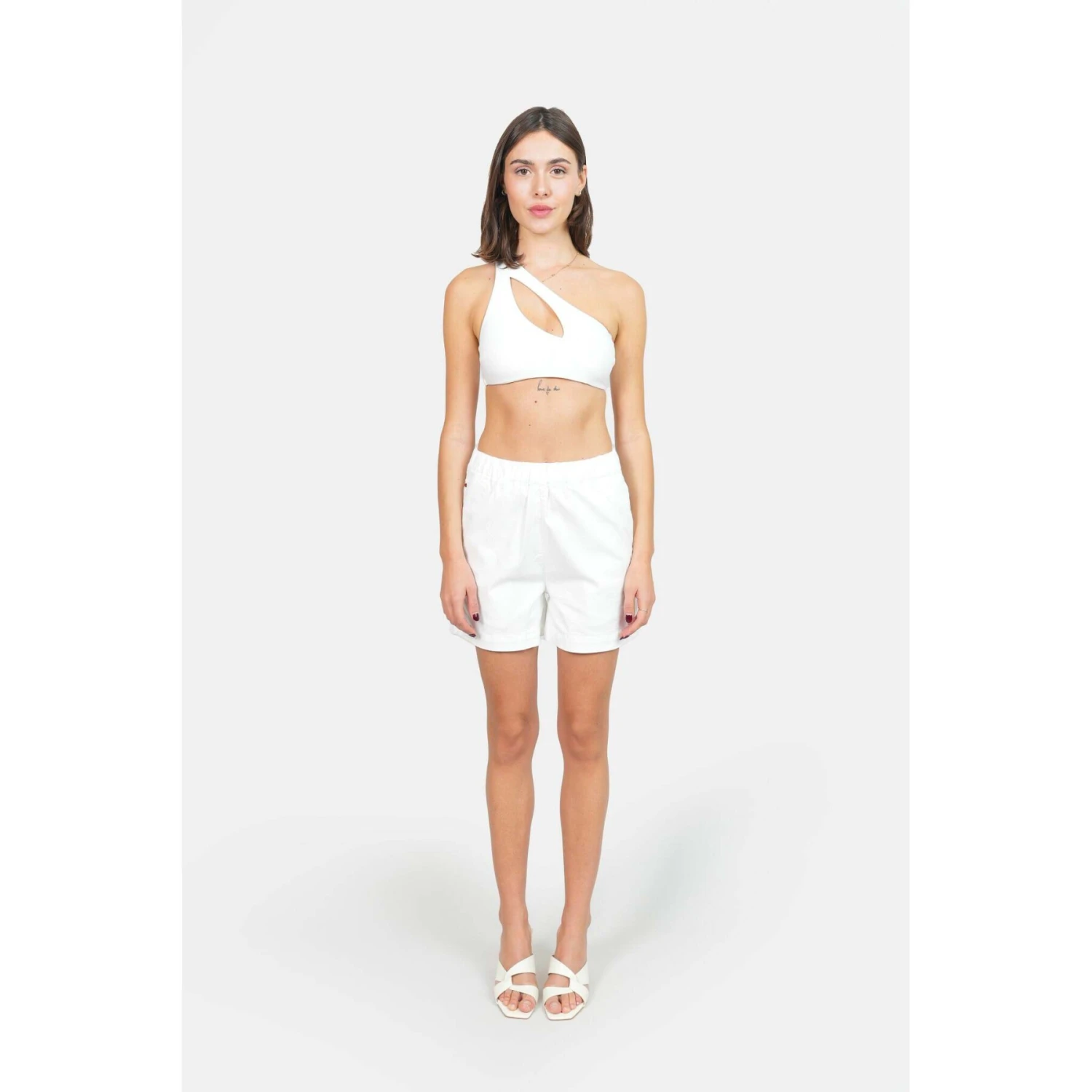 Onze witte ABBY shorts zijn ideaal als je een sportieve chique look look wilt. De snit houdt je comfortabel op warme zomerdagen.