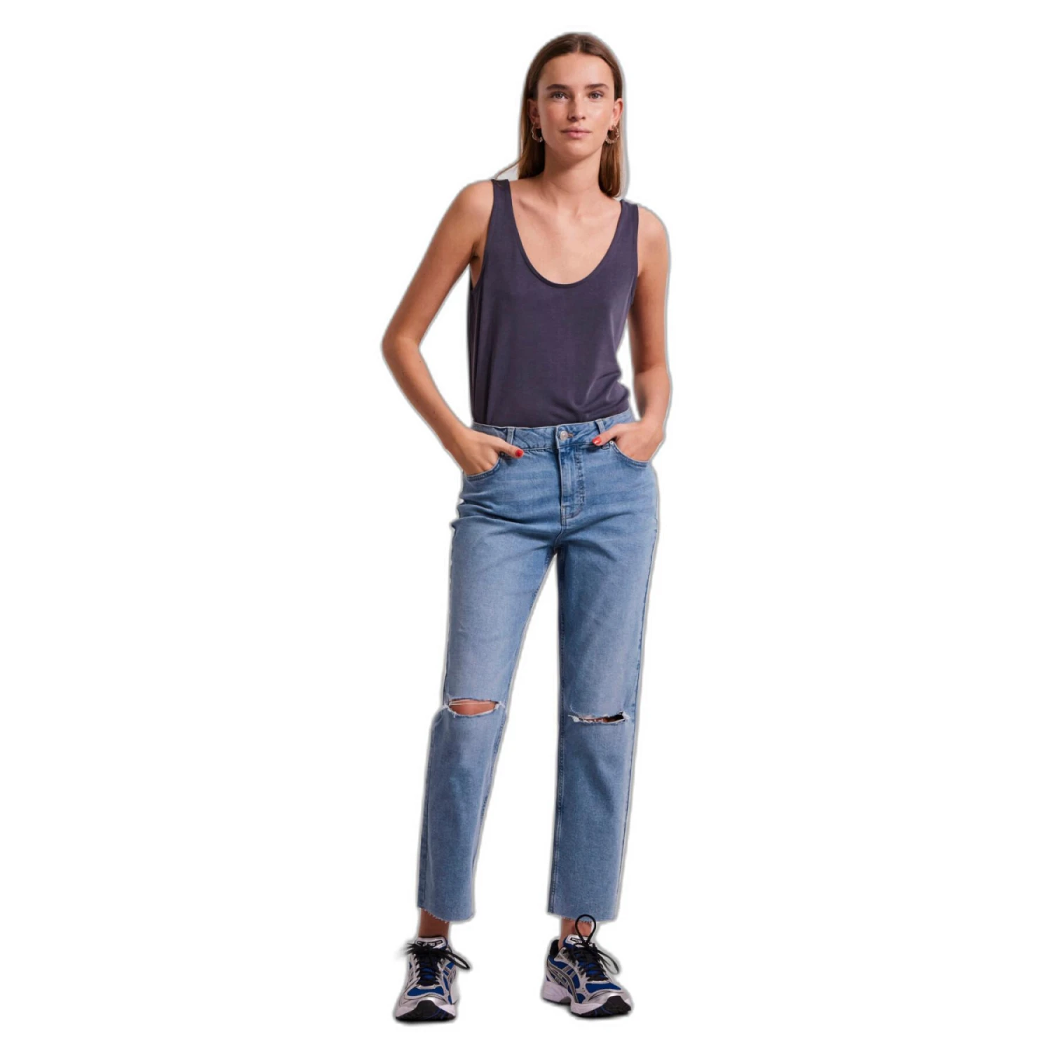 Hoge taille – Riemlussen – Jacron patch – Gulp met rits en klinknagel knoop – 5 zakken – Destroyed knie details – Medium blauwe wassing – Comfortabele stretch pasvorm MADE OF RECYCLED COTTON Dit product is gemaakt van gerecycled katoen. Gerecycled katoen spaart de natuurlijke hulpbronnen en vermindert de hoeveelheid textielafval.