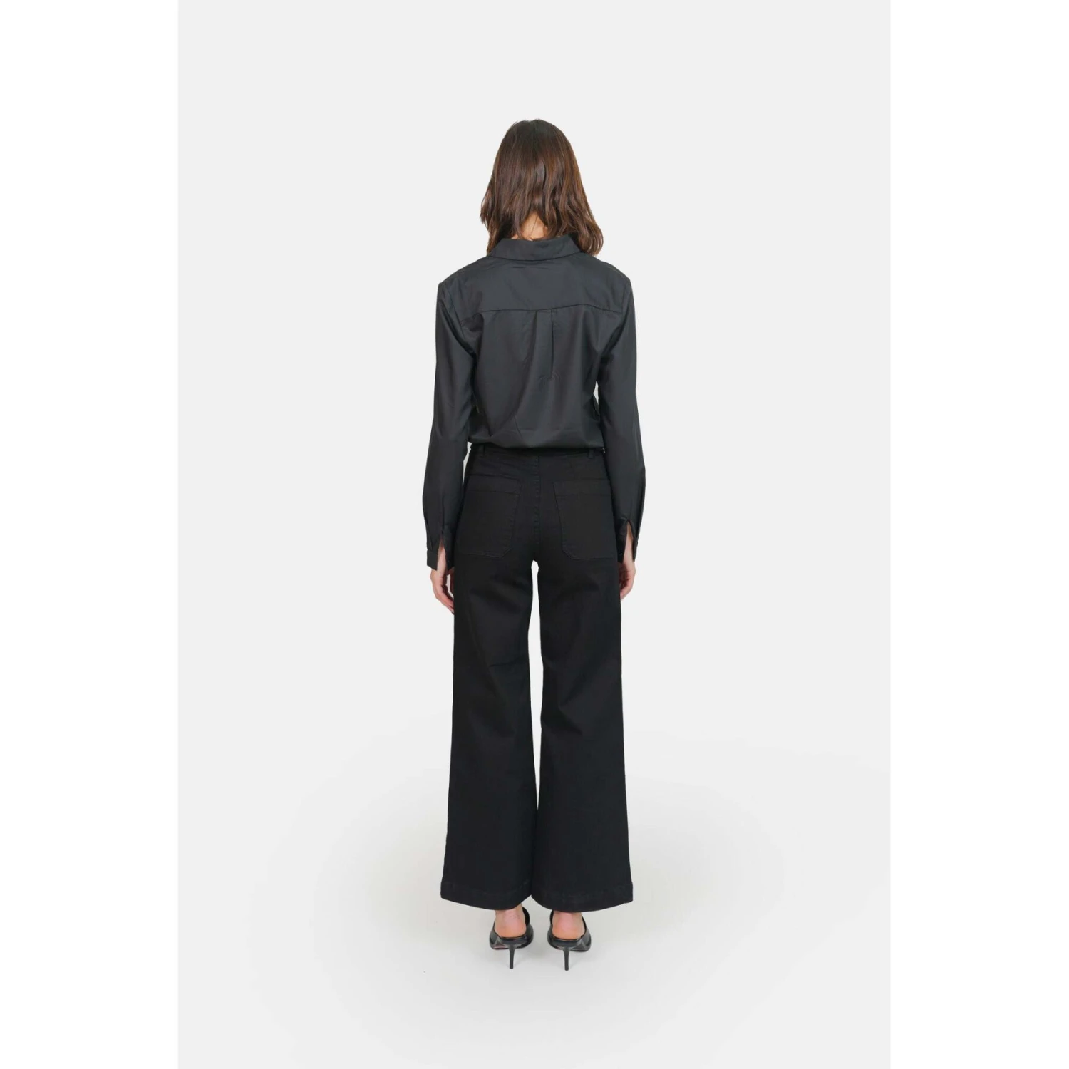 Met zijn hoge taille en uitlopende snit voegt de zwarte FAUVE katachtige zachtheid toe aan je garderobe.